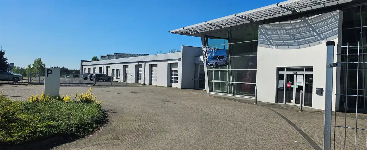 Nieruchomość zabudowaną salonem samochodowym położoną w Świebodzinie o powierzchni użytkowej: 1 800,97 m2 i działce: 6 205 m2.