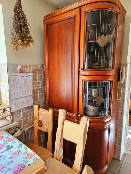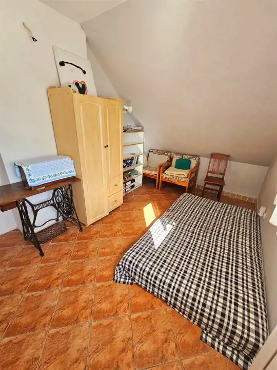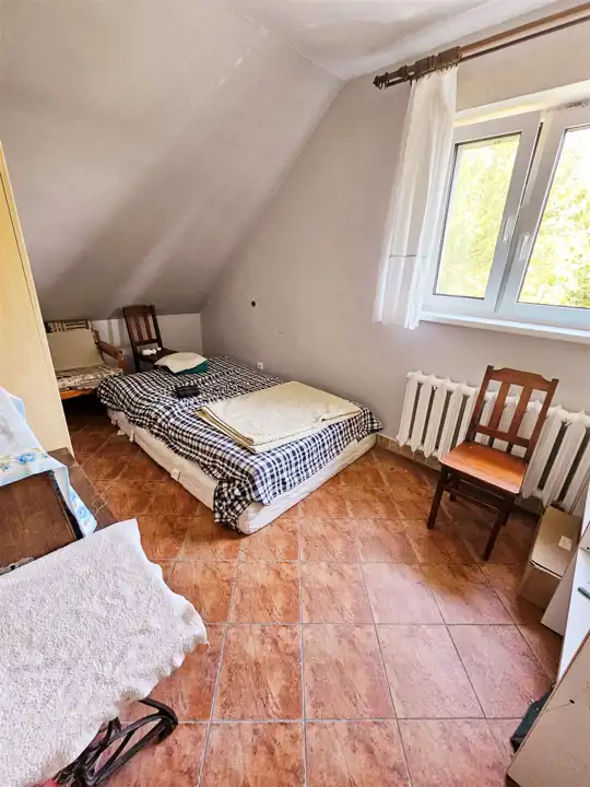 W budynku mieszkalnym o łącznej powierzchni użytkowej 132,56 m², znajdują się trzy pokoje na parterze o powierzchniach 8,36 m², 13,49 m² i 21,77 m² i trzy na poddaszu (20,31m², 8,31 m² i 5,27 m²). Na każdej kondygnacji przewidziano miejsce na kuchnię i łazienkę, co powoduje, że jest to świetna propozycja dla rodziny wielopokoleniowej czy planu inwestycyjnego zakładającego przekształcenie w obiekt noclegowy! Dolna kuchnia ma powierzchnię 11,81 m²; pomieszczenie przystosowane na cele kuchenne na górze (wymaga adaptacji) ma powierzchnię 8,13 m². Kuchnia na parterze jest otwarta z wejściem na salon.