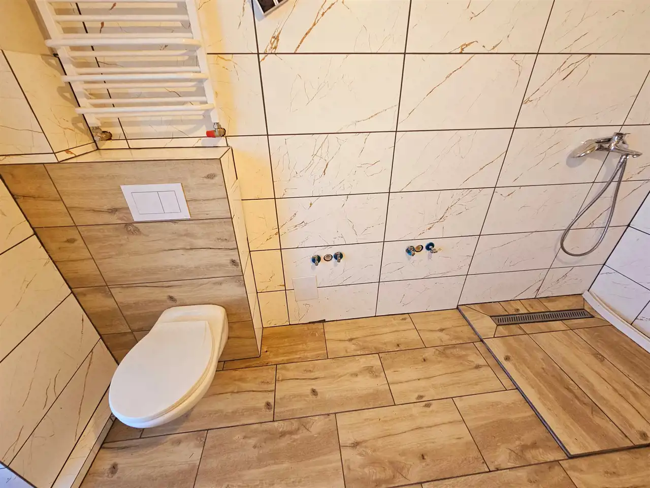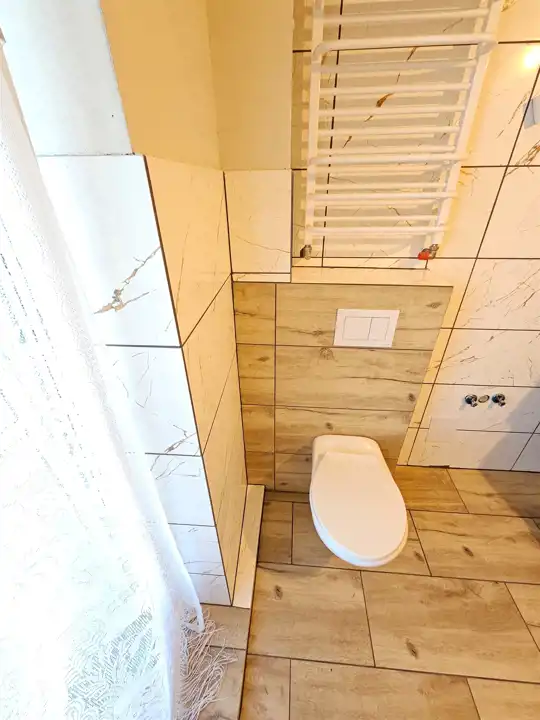 Górna łazienka o powierzchni 8,14 m² jest po remoncie; nowoczesna glazura i terakota i wygodny prysznic sprawiają, że nie musisz ponosić dodatkowych kosztów przebudowy - wymagane są jedynie niewielkie poprawki, z tej łazienki jest możliwość wykonania przejścia na taras, nowe duże okno zostało już zamontowane tam jest naprawdę cudowny widok.