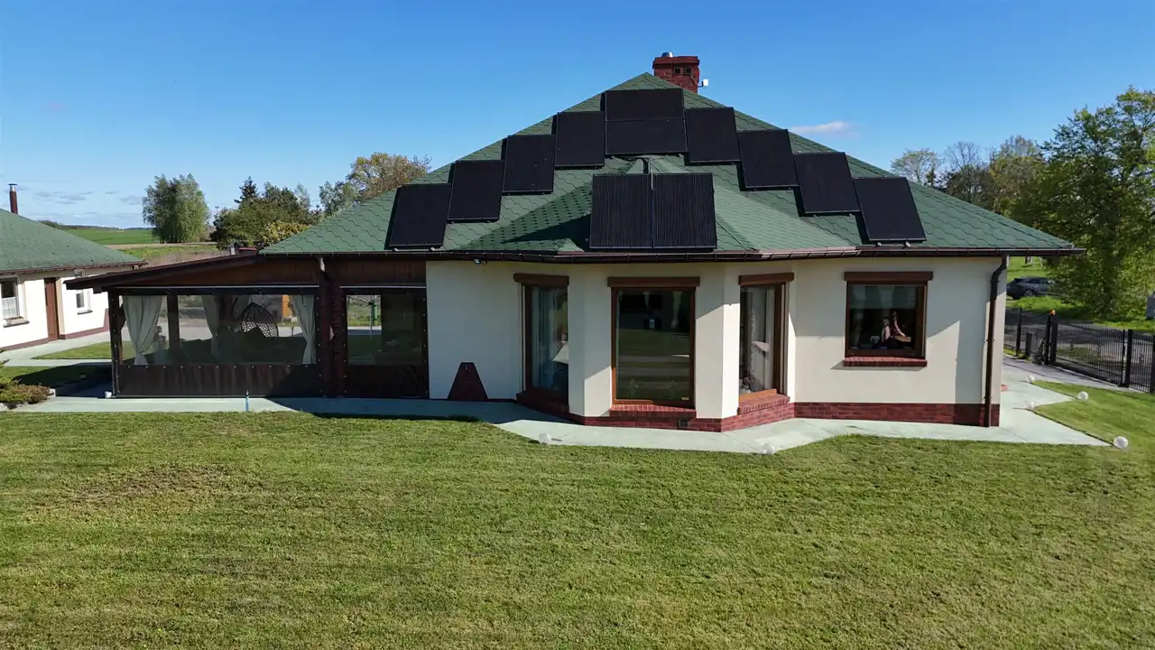 - Instalacja fotowoltaiczna 3,6 kW (w pełni pokrywa bieżące zużycie energii elektrycznej, brak opłat za prąd!)