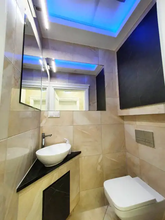 - oświetlenie dekoracyjne w każdym pomieszczeniu – paski LED (możliwość zdalnej regulacji pilotem)