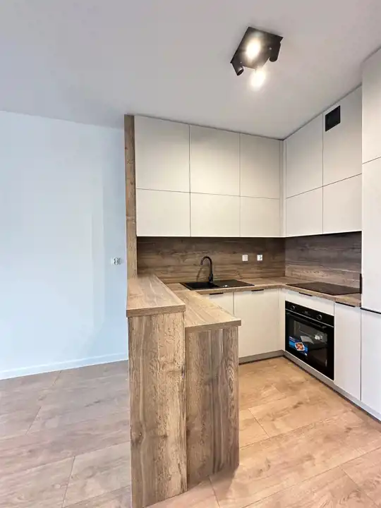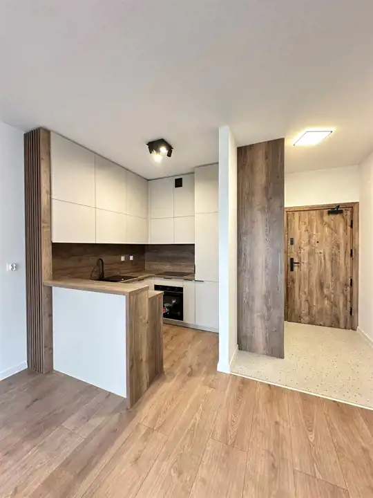 Aneks kuchenny został wyposażony w niezbędne sprzęty AGD, co zapewnia wygodę codziennego użytkowania. Wysokiej jakości wykończenia dodają wnętrzu elegancji i nowoczesnego charakteru.