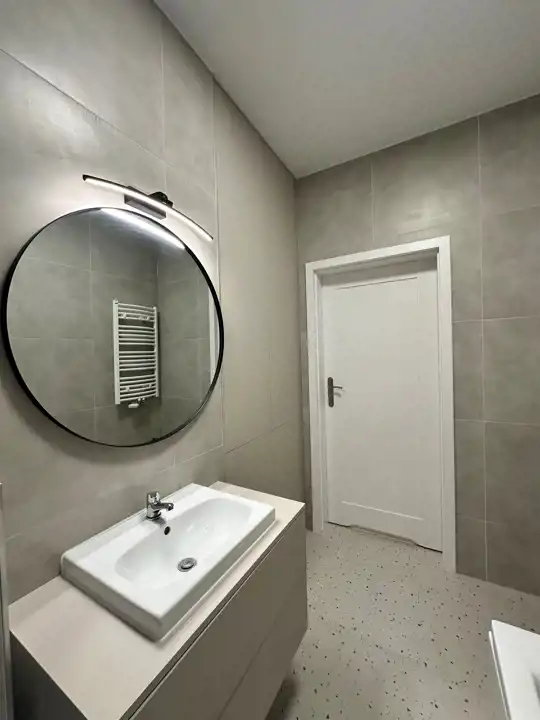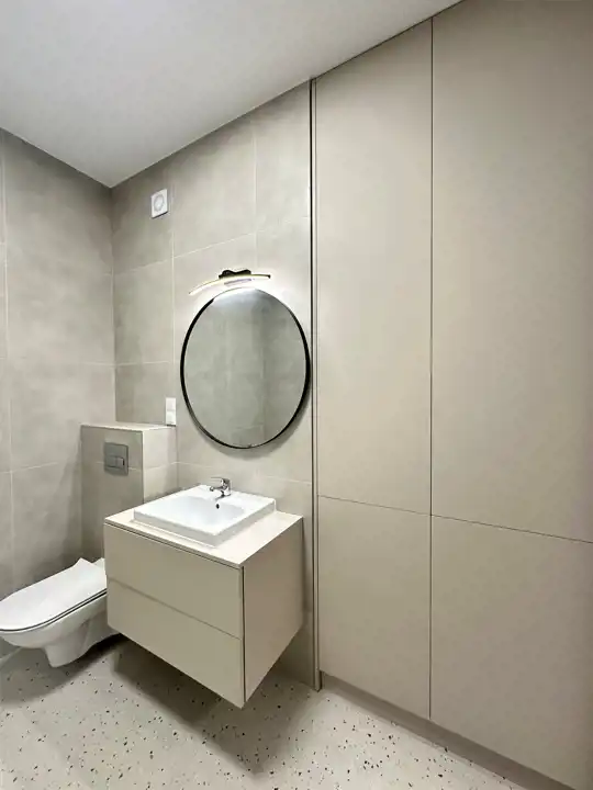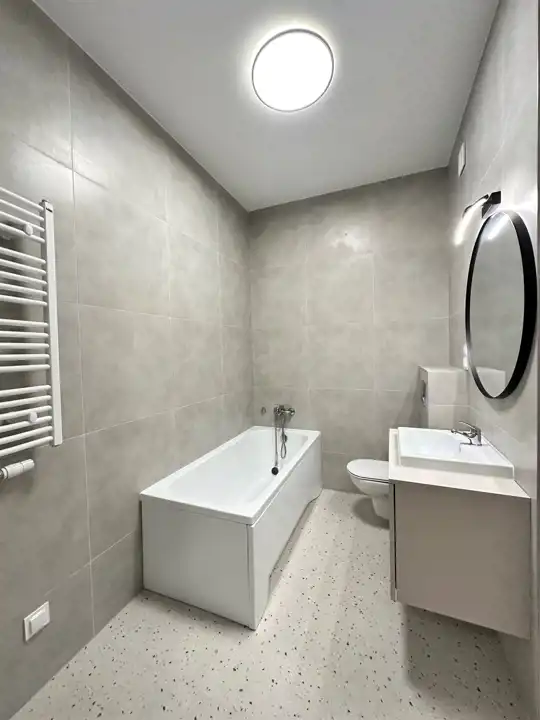 Wykończona w wysokim standardzie, wyposażona w wannę, umywalkę z szafką, lustro oraz miejsce na pralkę. Funkcjonalna i wygodna w codziennym użytkowaniu.