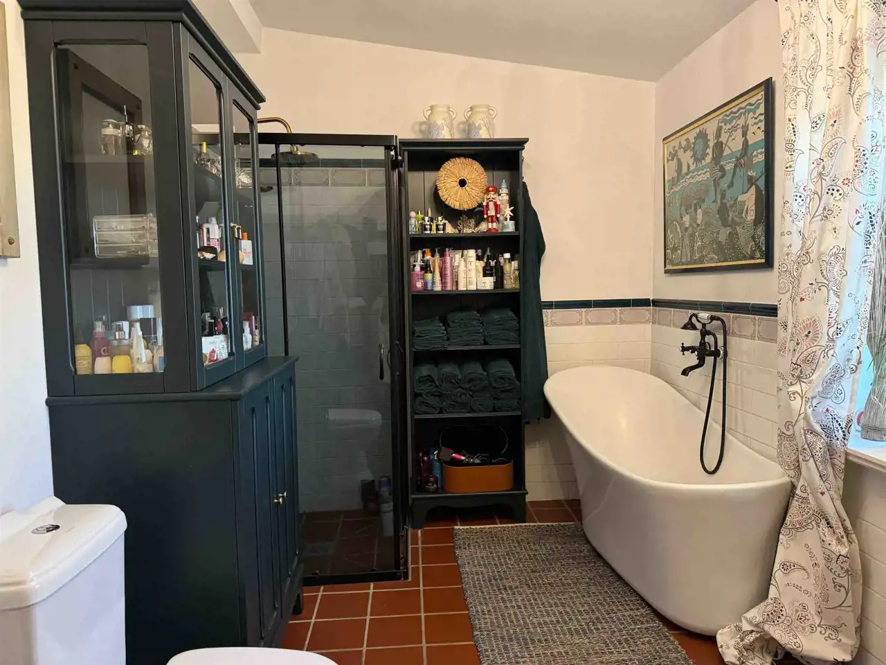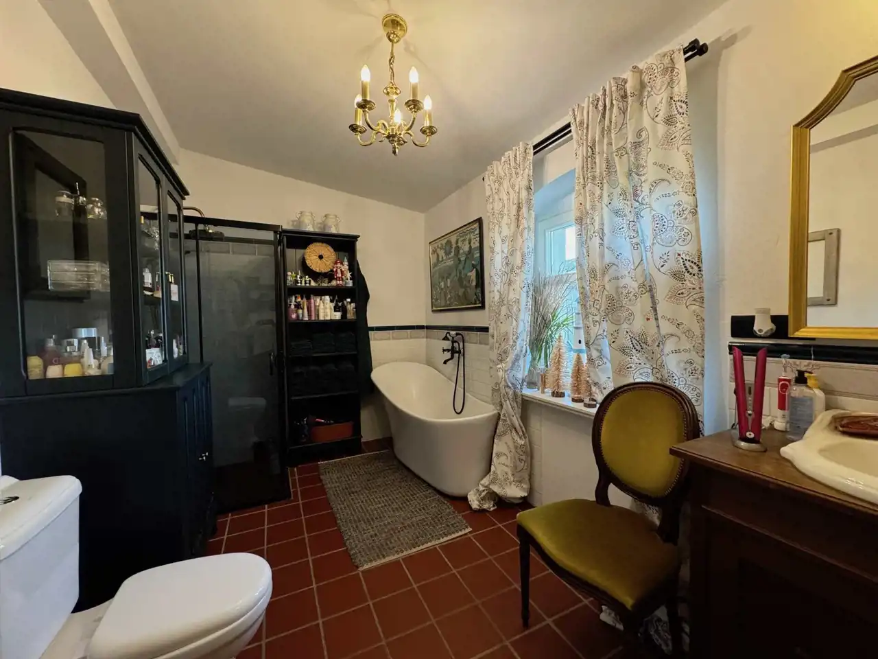 - Łazienka z prysznicem , stylową wanną wolnostojącą oraz toaletą (9,80 m²),