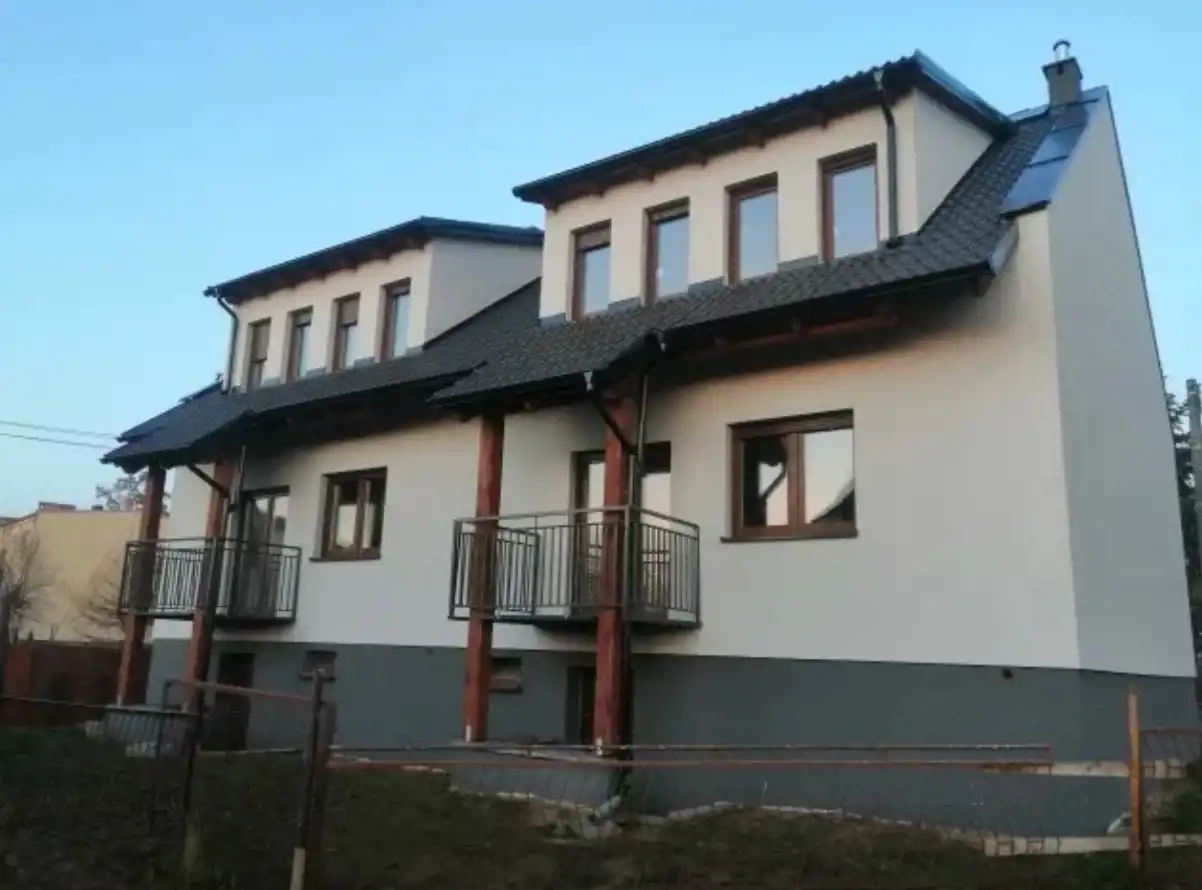 Standard wykończenia: ściany- gładź; podłogi-posadzka; okna PCV, 3-szybowe, rolety zewnętrzne antywłamaniowe, przy dużych oknach elektryczne; rozprowadzona instalacja elektryczna, zamontowane gniazdka oraz skrzynka z bezpiecznikami, wykonana instalacja centralnego ogrzewania, podłogówka na całym parterze i w łazience na pietrze, zawieszone grzejniki, przyłącze wodno-kanalizacyjne wraz z rozprowadzeniem do odpowiednich pomieszczeń, parapety zewnętrze, schody betonowe wewnętrzne, dachówka betonowa z połyskiem, budowany z porothermu, ocieplony szarym styropianem 12 cm, poddasze ocieplone watą 15+15.