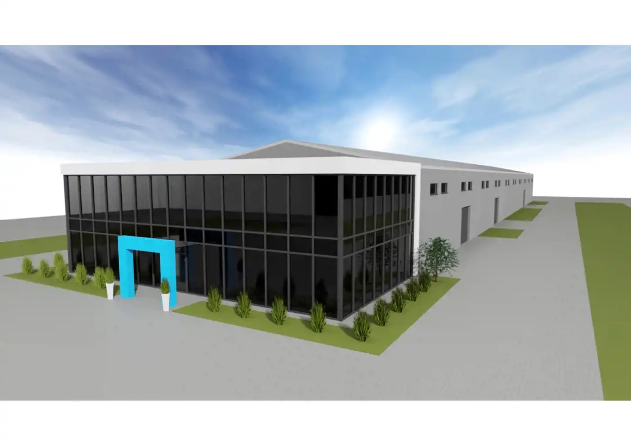 Zaprojektowano ogrzewanie hali i biurowca: pompa ciepła oraz fotowoltaika. Dojazd drogą utwardzoną.