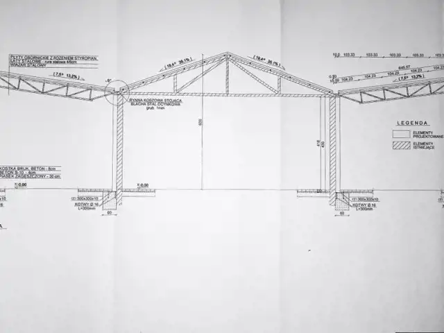 Wymiary hali: szerokość: 18,15 m x długość: 22,66 m. Wysokość hali: od 4 m do 6 m.