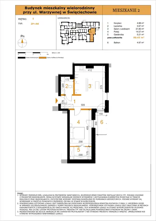 - Charakterystyka mieszkania 50.43 m2, 2 pokoje
