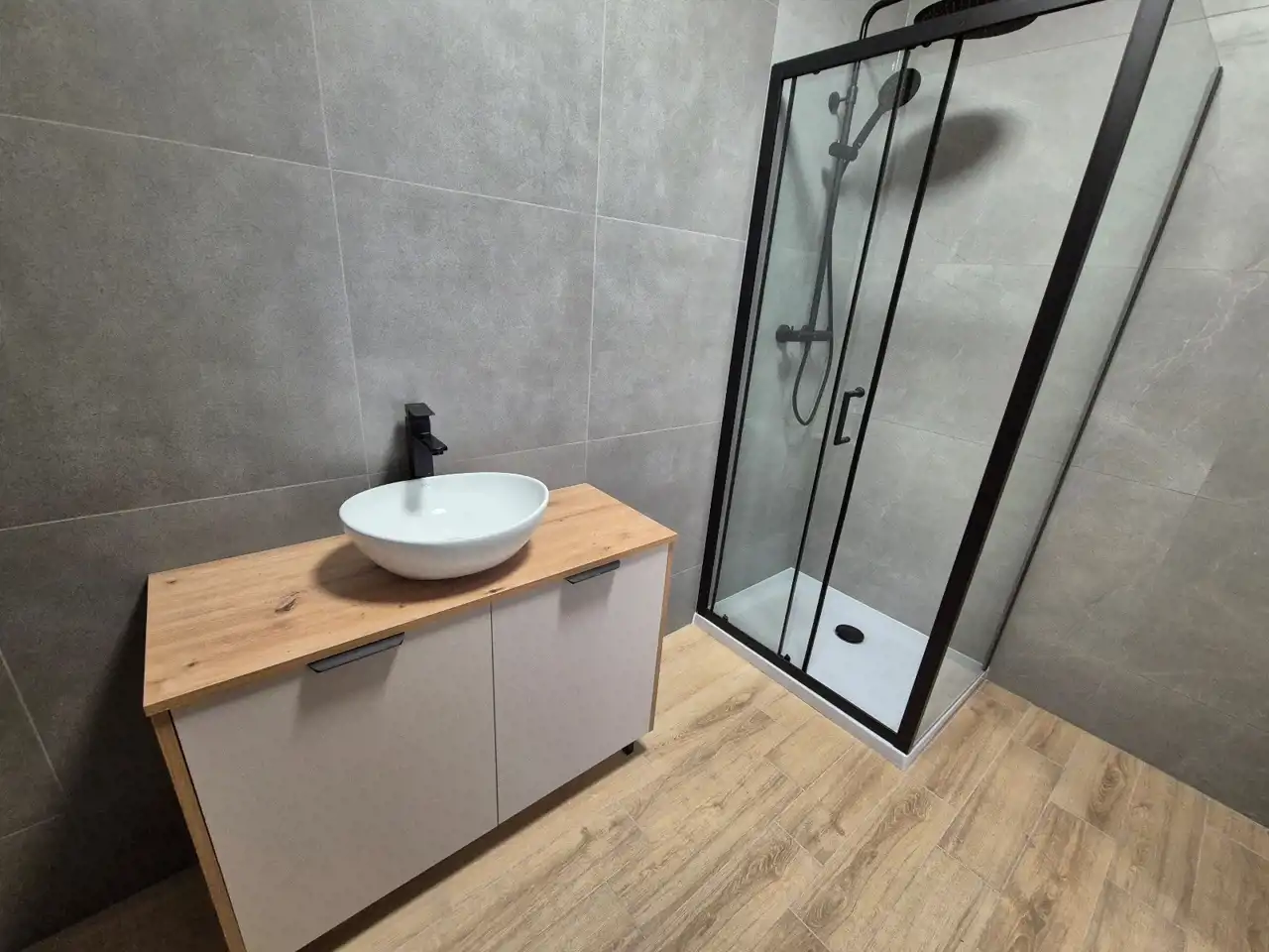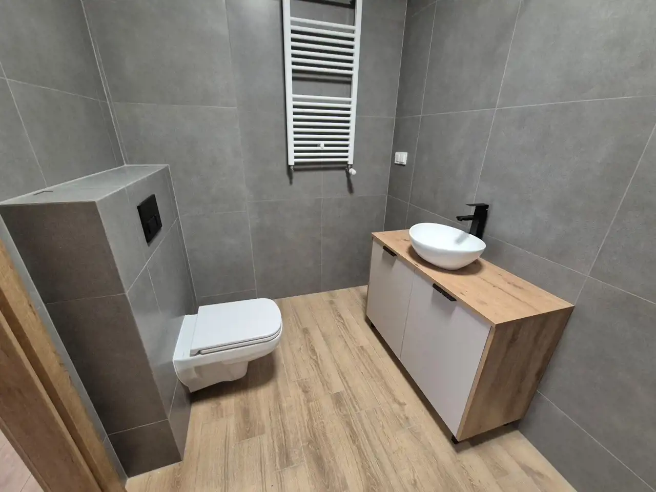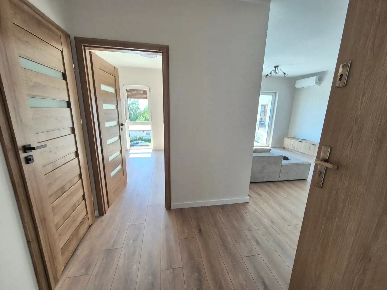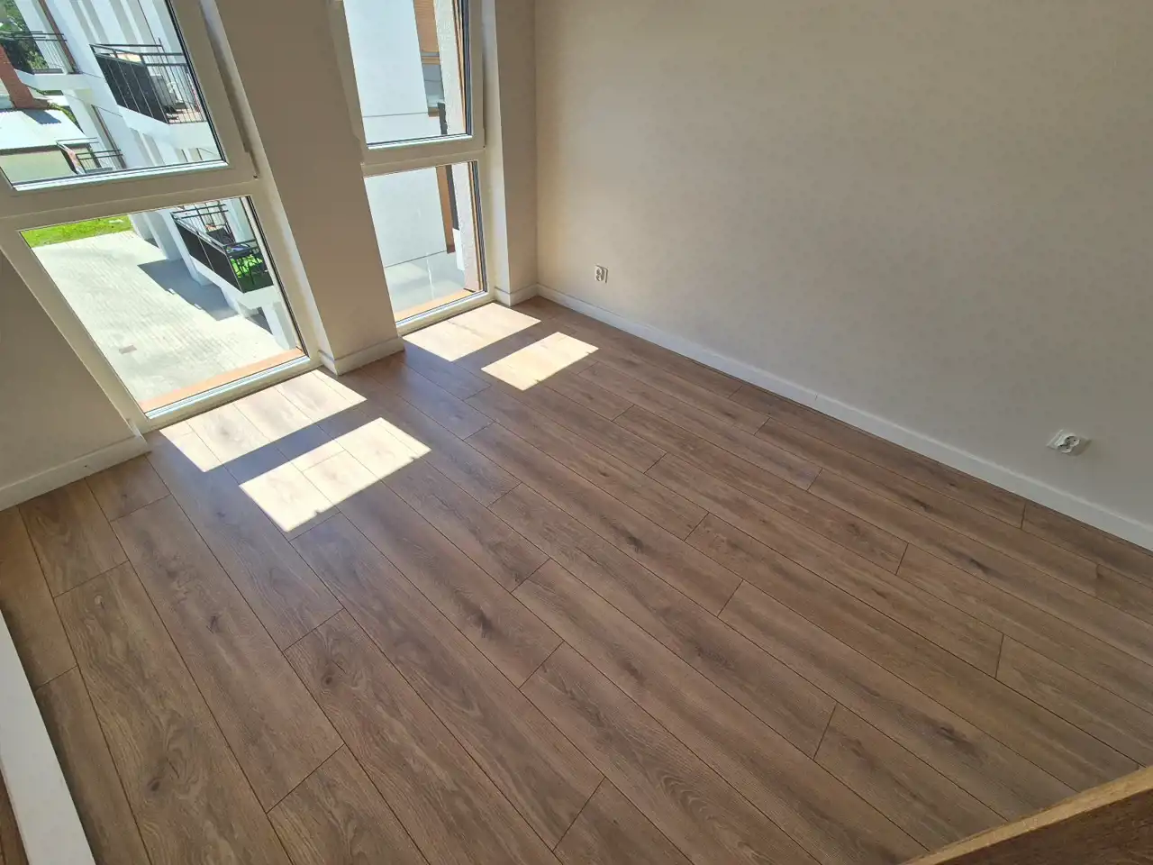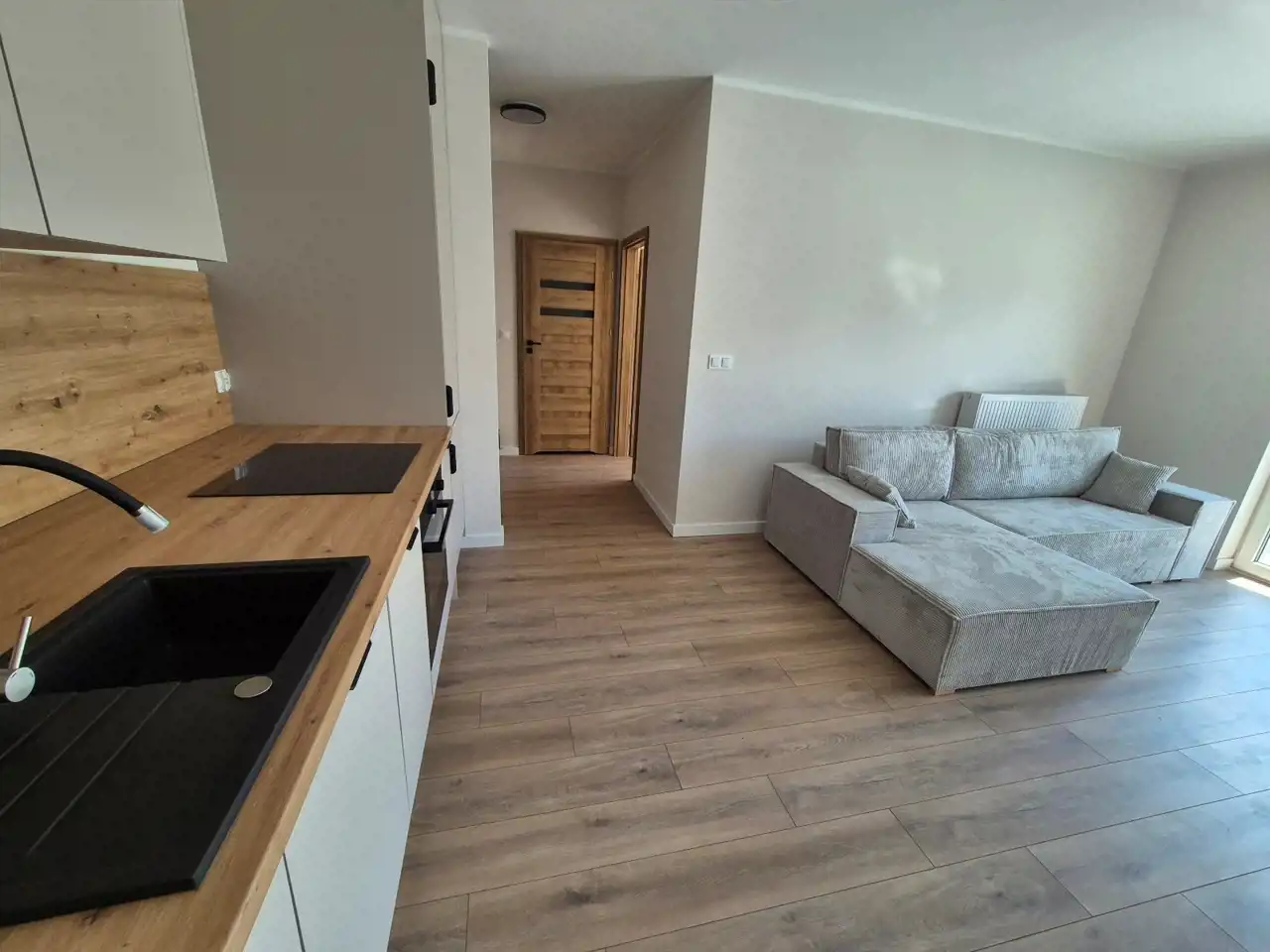 Standard wykończenia: ściany w pokojach gładzone i malowane, na podłogach panele. Aneks kuchenny wyposażony w zabudowę oraz sprzęt AGD (płyta elektryczna, piekarnik, zmywarka, lodówko - zamrażarka, zlewozmywak). Okna PCV dwukolorowe (wewnątrz białe, na zewnątrz brązowe) z roletami zewnętrznymi. Zamontowane drzwi zewnętrzne oraz wewnętrzne. Łazienka wyłożona płytkami ceramicznymi wyposażona w kabinę prysznicową, szafkę oraz toaletę.