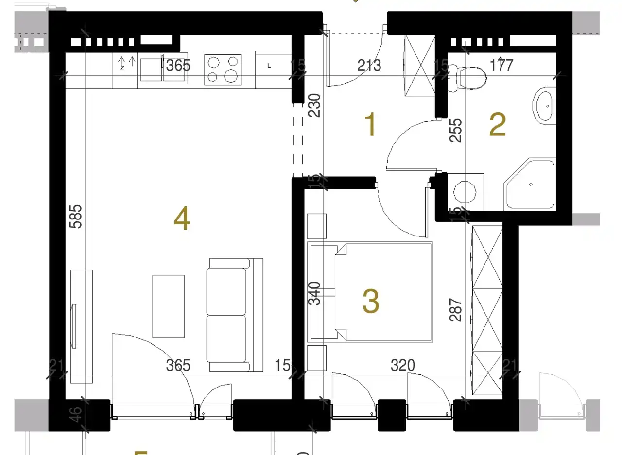 - Charakterystyka mieszkania 41.59 m2, 2 pokoje