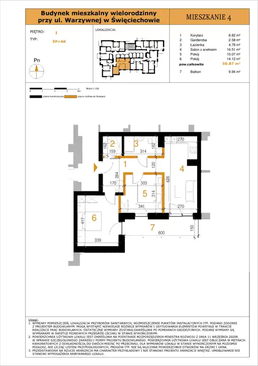 - Charakterystyka mieszkania 56.87 m2, 3 pokoje
