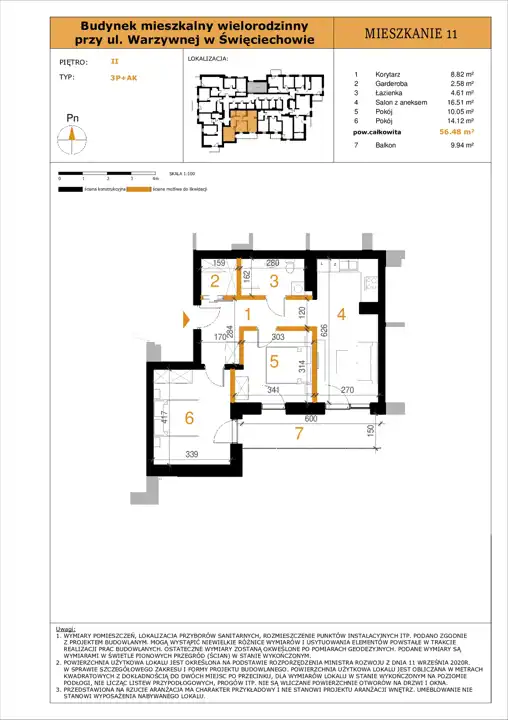 - Charakterystyka mieszkania 56.48 m2, 3 pokoje