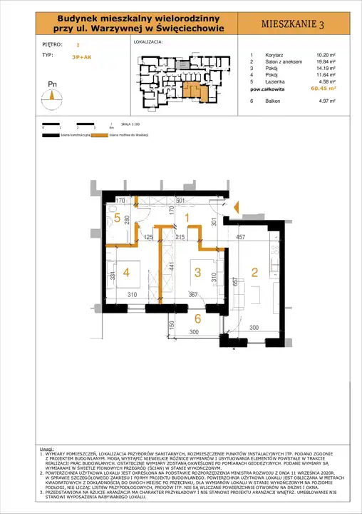 - Charakterystyka mieszkania 60.45 m2, 3 pokoje