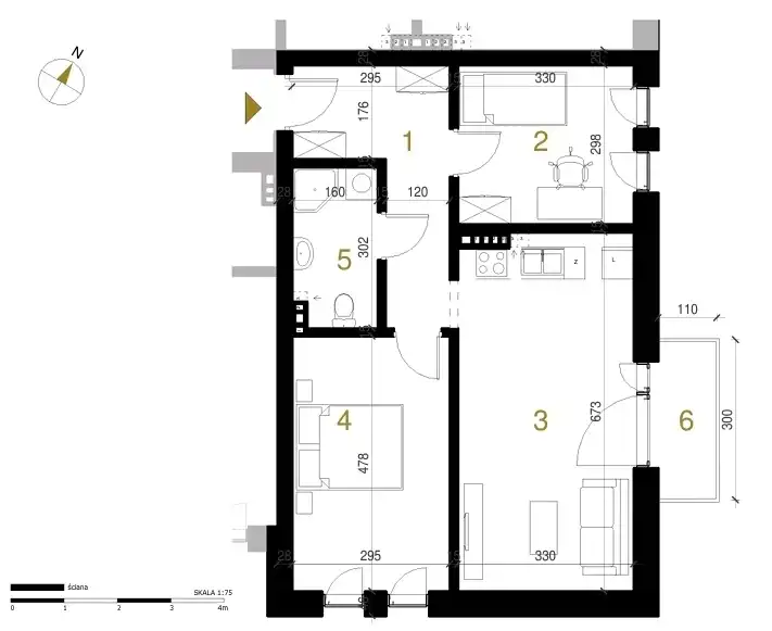 - Charakterystyka mieszkania 61.68 m2, 3 pokoje