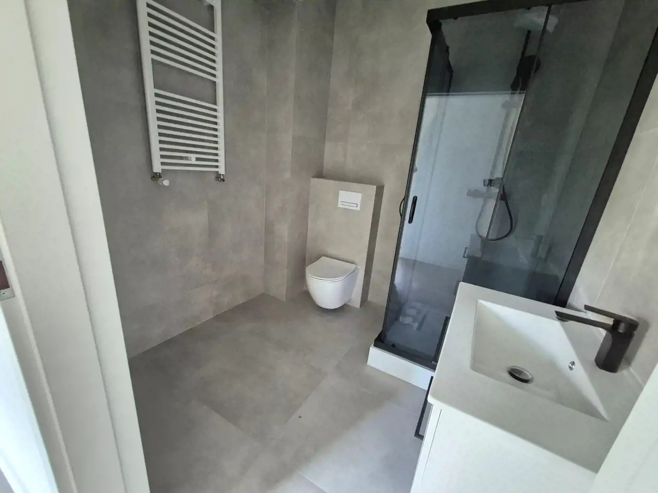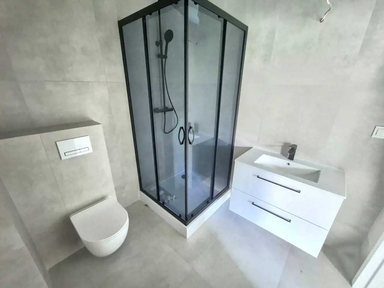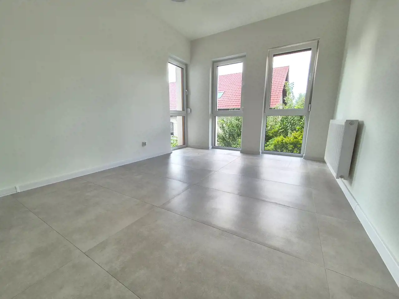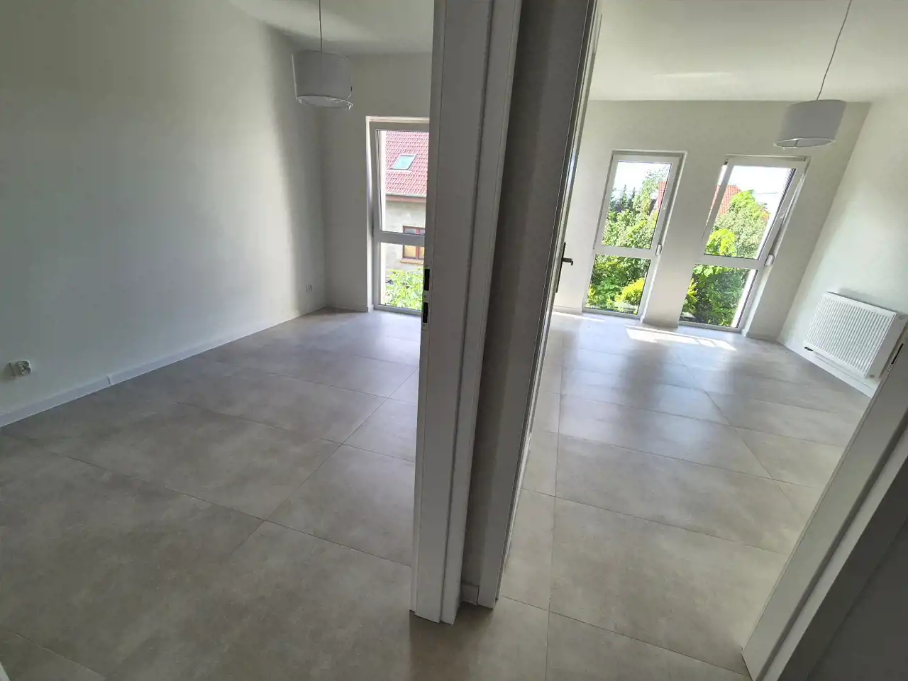 Standard wykończenia: ściany w pokojach malowane, na podłogach płytki ceramiczne. Łazienka wyposażona w kabinę prysznicową, umywalkę z szufladami oraz toaletę, wyłożona płytkami. Drzwi wewnętrzne w kolorze białym, okna PCV z roletami zewnętrznymi. Zamontowane oświetlenie, gniazdka i kontakty.