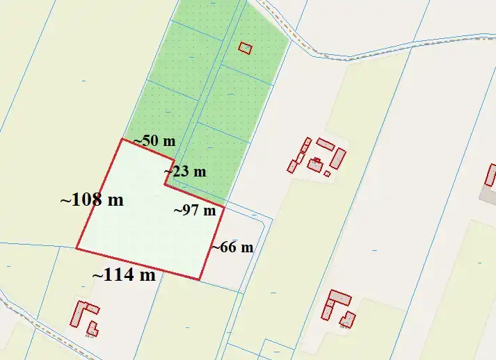 - Działka lekko nachylona, nieregularny