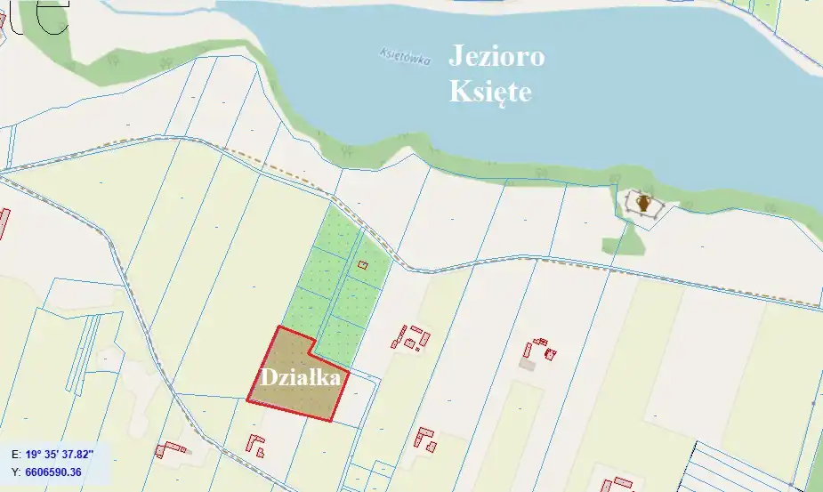 Działka znajduje się w pobliżu Jeziora Księte w malowniczej i spokojnej okolicy.