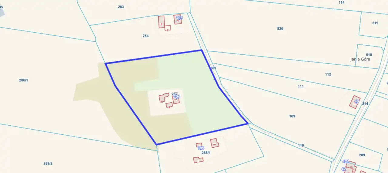 Działka o powierzchni 1,16 ha stanowi doskonałą bazę pod siedlisko, gospodarstwo rolne, agroturystykę lub inwestycję rekreacyjną.