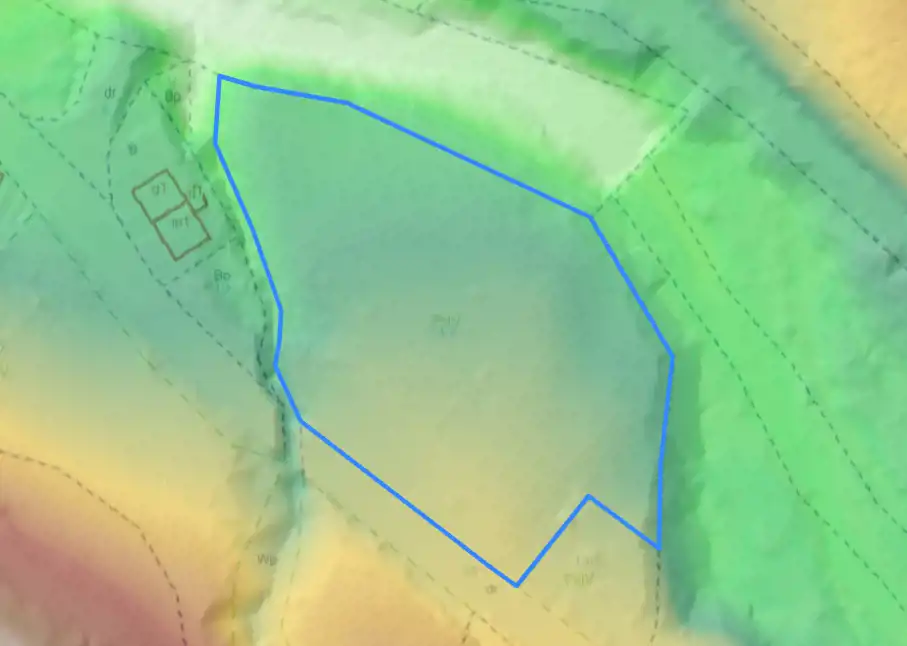 Działka posiada zróżnicowany kształt, co nadaje jej indywidualny charakter i daje ciekawe możliwości zagospodarowania terenu z wykorzystaniem naturalnych uwarunkowań krajobrazowych.