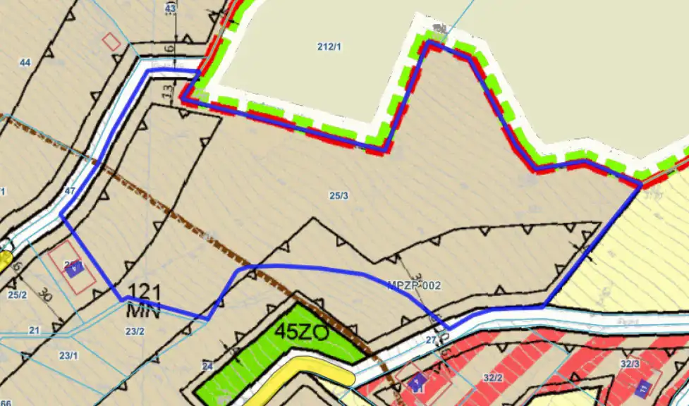 - Działka Niezagospodarowana, lekko nachylona, nieregularny