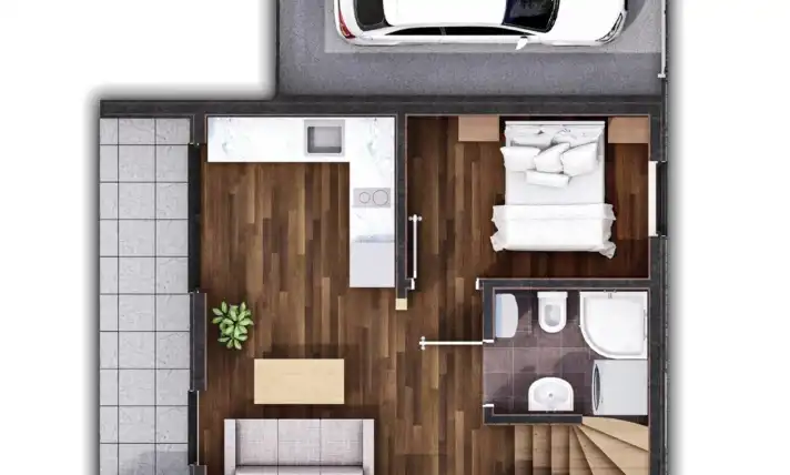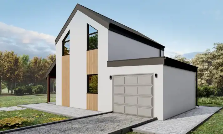 Z niesymetrycznym układem okien, przestronnym garażem z elektryczną bramą, pięknie doświetlonymi przestrzeniami, czterema sypialniami i przestronnym salonem z aneksem kuchennym i wyjściem na taras, ten dom o powierzchni 83,3 metrów kwadratowych zapewni idealne warunki do życia dla Ciebie i Twojej rodziny.