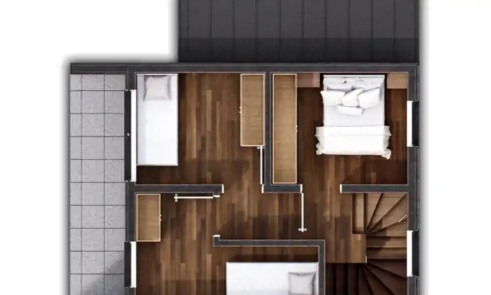 - Dach pokryty blachą na rąbek - szczelność i odporność na warunki atmosferyczne.