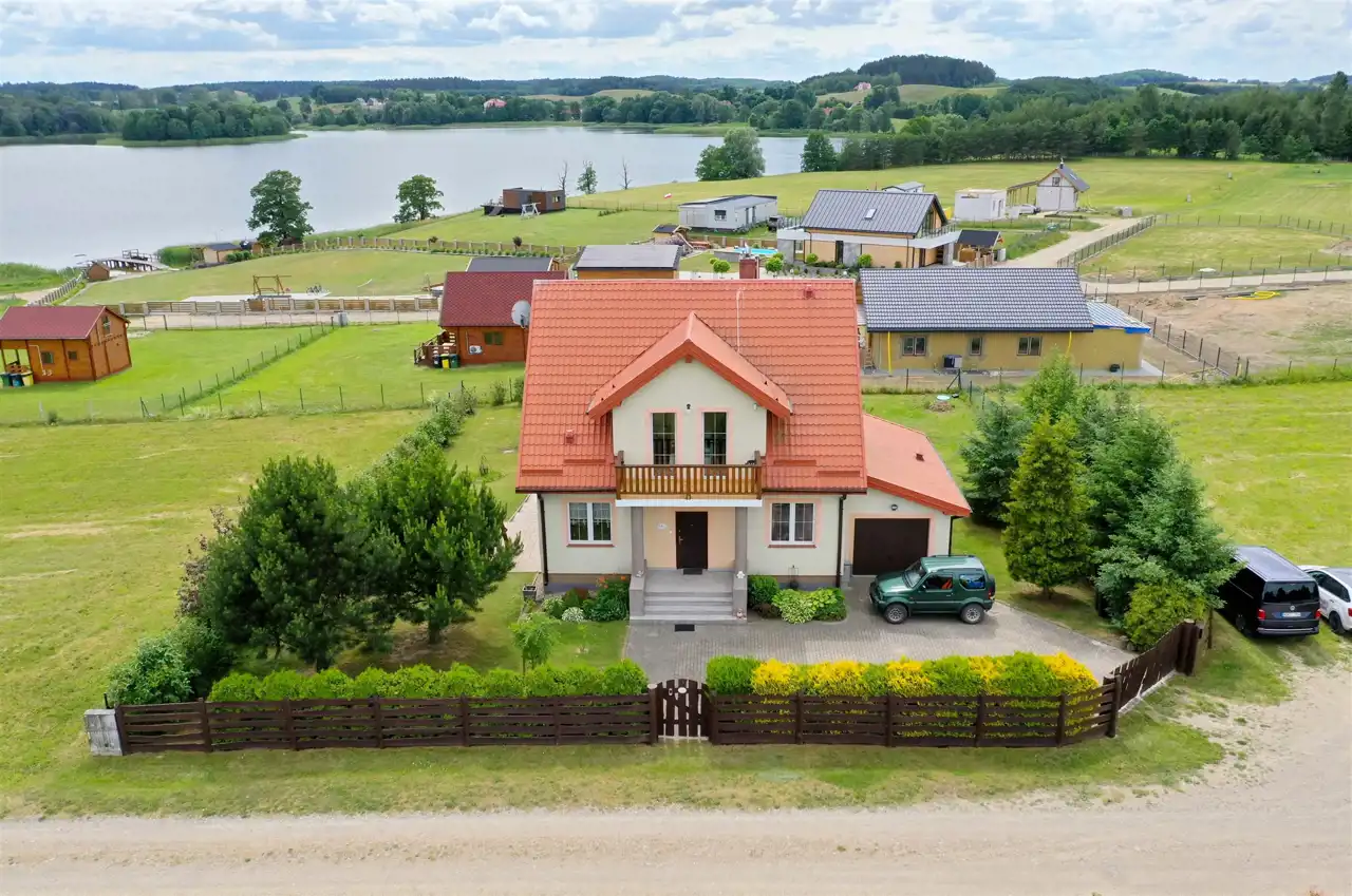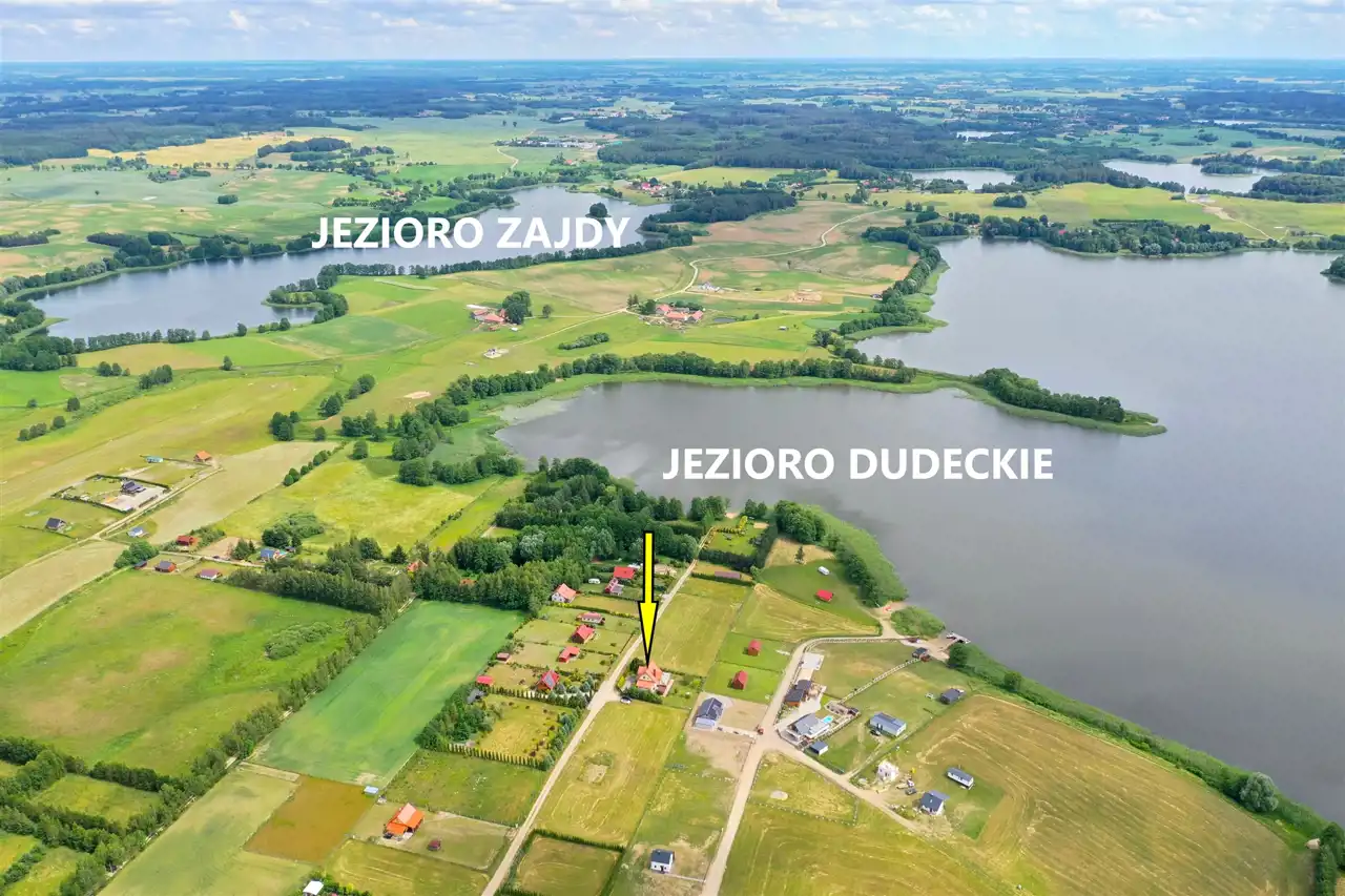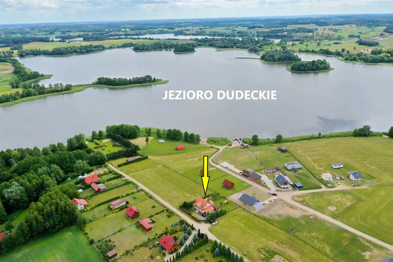 Nieruchomość położona w spokojnym miejscu, w otoczeniu domów jednorodzinnych, bez szumu z ruchliwych ulic. W odległości 200 m znajduje się jezioro Dudeckie, gdzie usytuowane jest plaża prywatna, w której właściciel domu posiada udział i może swobodnie z niej korzystać.