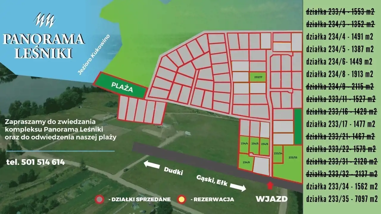 Działki budowlane o powierzchniach od 1387 m2 do 1913 m2, położone w kompleksie Panorama Leśniki nad Jeziorem Kukowino, w miejscowości Kukówko, gmina Świętajno.