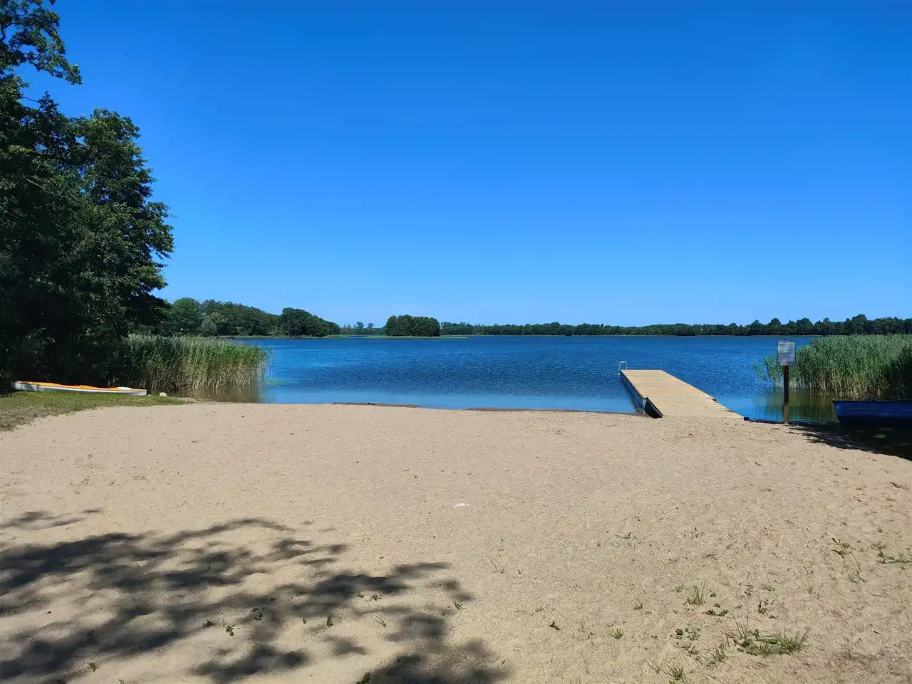 Na wspólnej, ogrodzonej plaży wybudowany został pomost o powierzchni użytkowej około 50 m2.