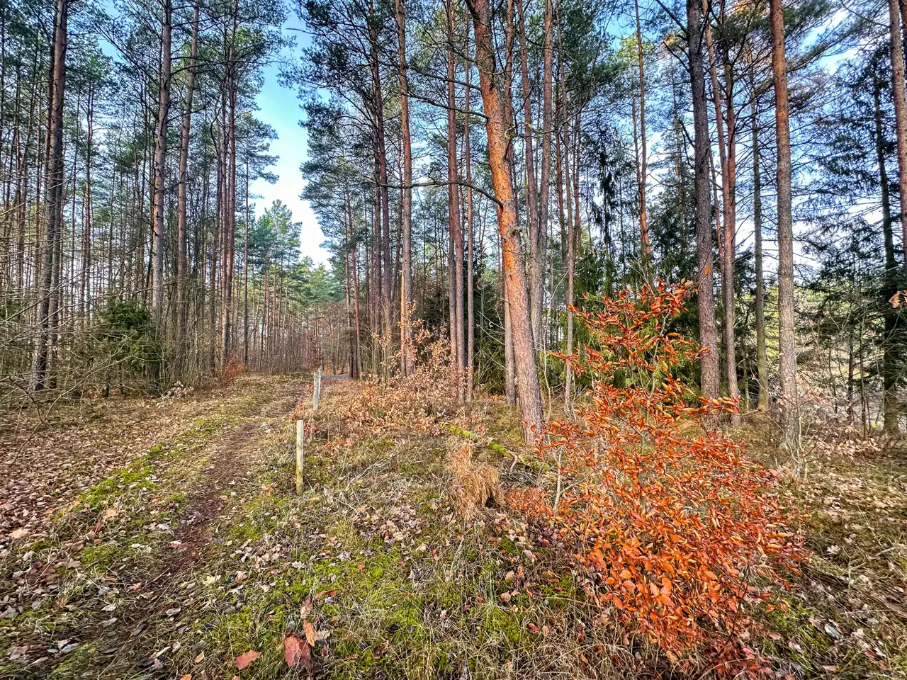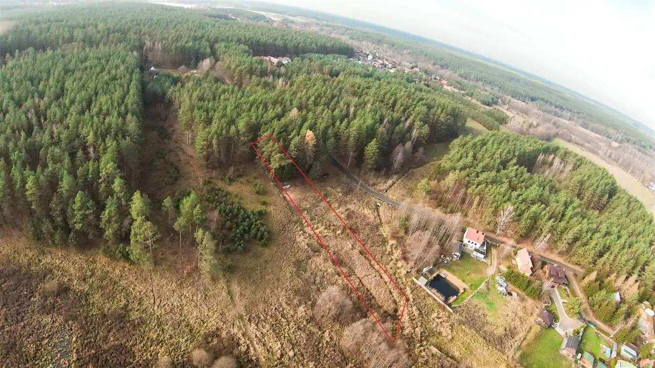 - Działka Niezagospodarowana, częściowo zalesiona, nieregularny