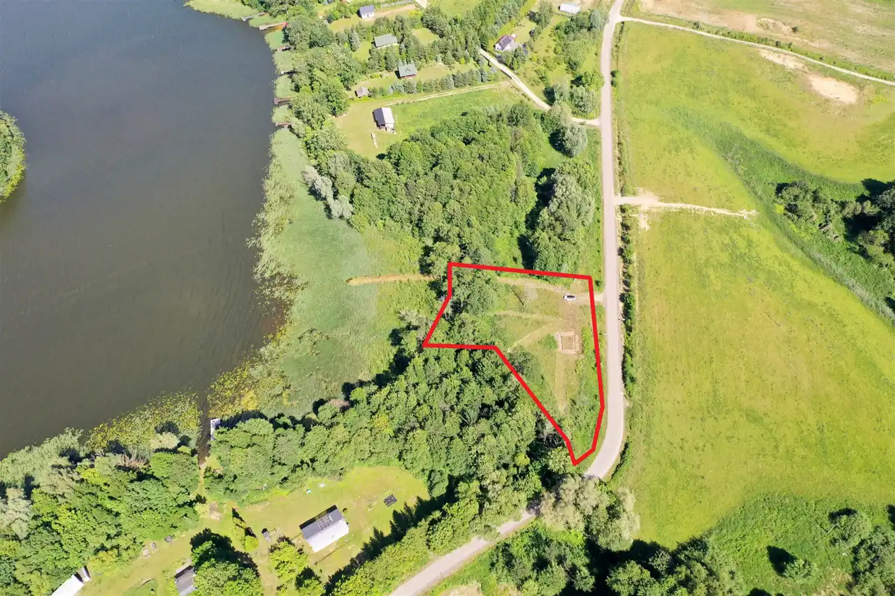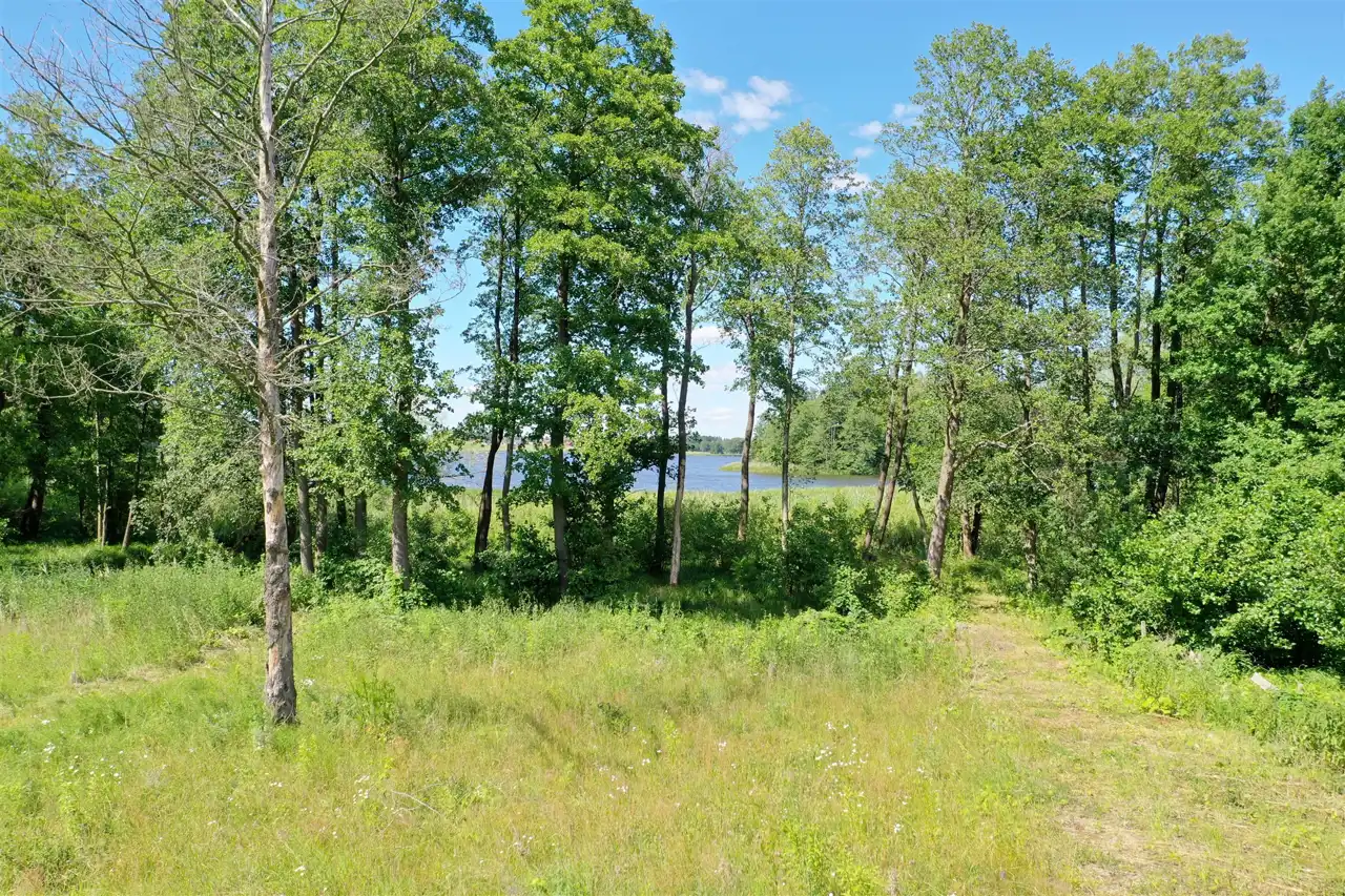 Działka ma nieregularny kształt. Teren lekko pochyły w stronę jeziora. Dojazd do nieruchomości odbywa się powiatową drogą asfaltową.
