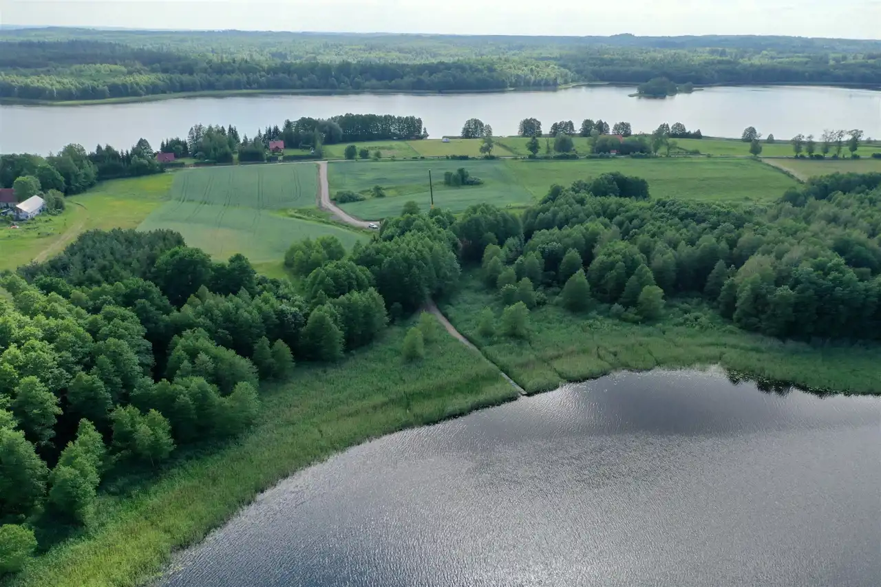 Z działki rozpościera się wyjątkowo piękny, panoramiczny widok na Jezioro Łaźno i Puszczę Borecką.