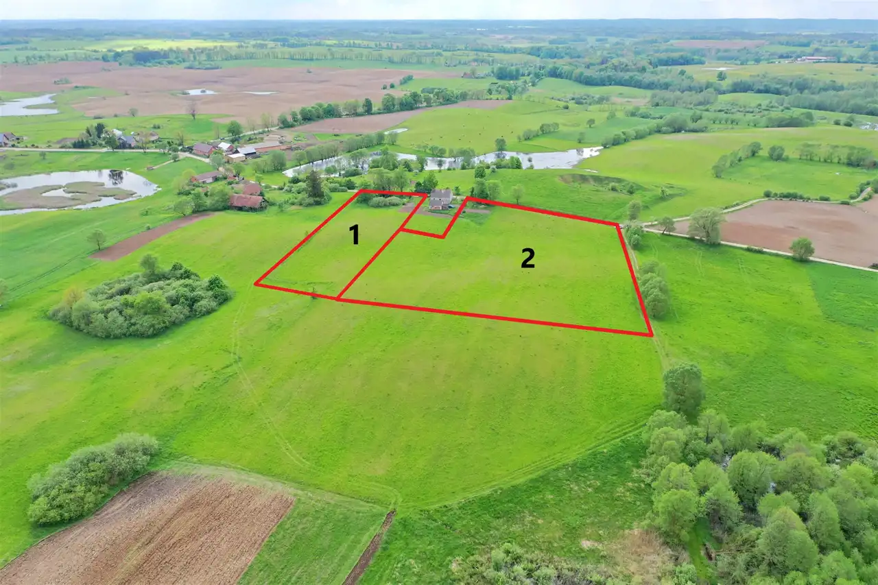 Działka o nr 1 ma wydaną prawomocną decyzje o warunkach zabudowy na budowę budynku mieszkalnego jednorodzinnego oraz budynku gospodarczego. Właściciel jest w trakcie pozyskiwania decyzji o warunkach zabudowy na działkę nr 2.