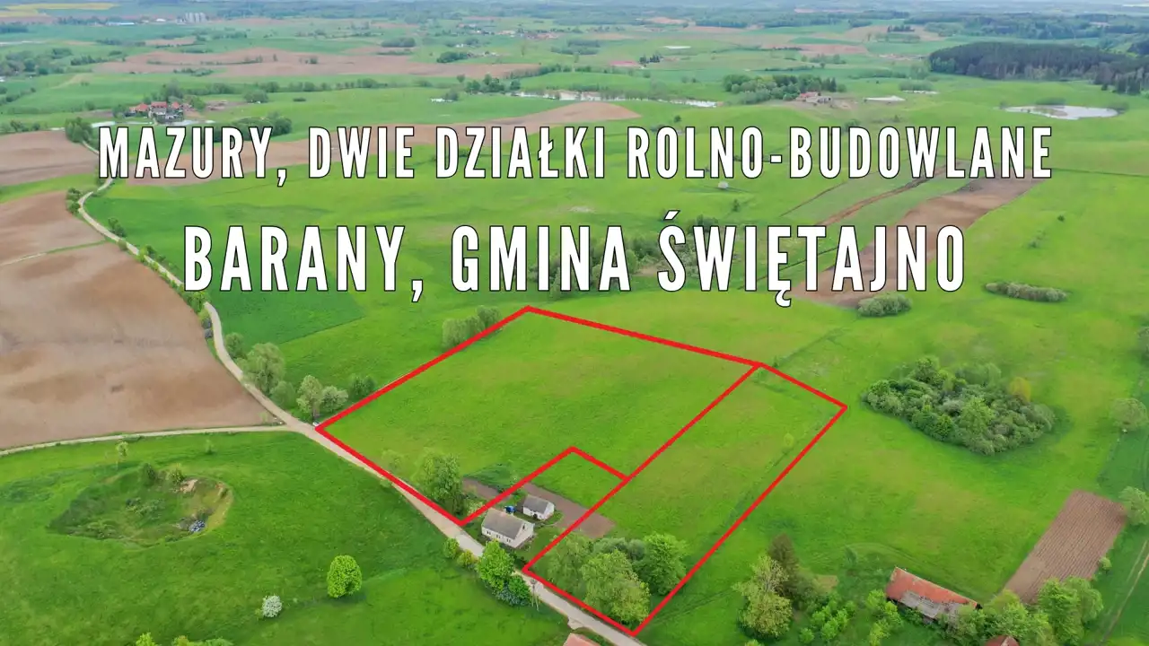 Na sprzedaż dwie malownicze działki rolno – budowlane o powierzchniach 5523 m2 oraz 1,4590 ha, położone w zacisznej mazurskiej wsi Barany, gmina Świętajno, powiat olecki.
