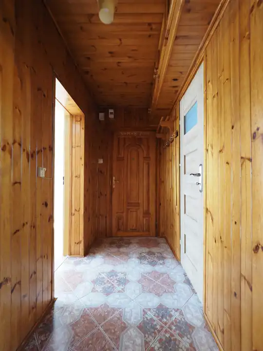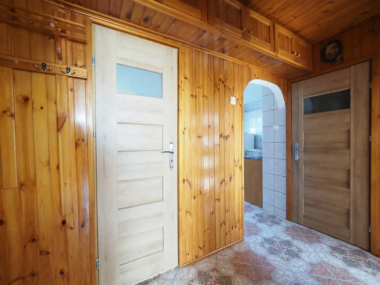 Nieruchomość składa się z przestronnej kuchni (11 m2), dwóch pokoi (16 m2, 12 m2), przedpokoju (4 m2), łazienki (3.5 m2) oraz spiżarni (5 m2). Do mieszkania przynależy piwnica, garaż jednostanowiskowy oraz wiata na drewno.