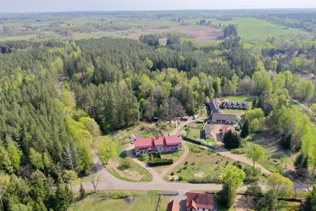 Jednym z wielu atutów nieruchomości jest cicha i spokojna okolica. W odległości 30 metrów znajduje się kompleks leśny, który graniczy z Puszczą Borecką oraz rzeką Łaźną Strugą. Jest to idealne miejsce dla tych, którzy cenią kontakt z naturą. Pomimo otaczającej przyrody odległość od centrum Olecka wynosi jedynie 20 kilometrów.