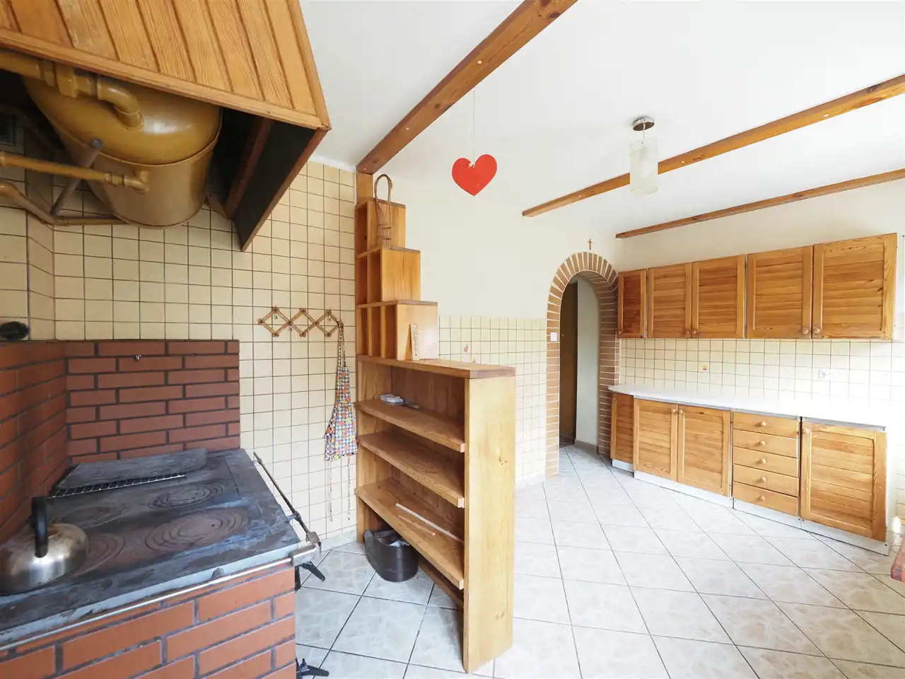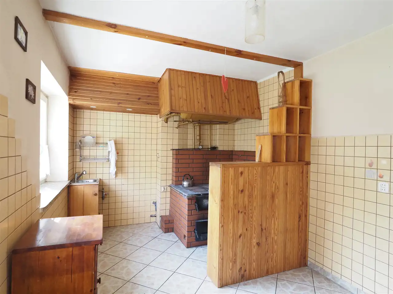 Lokal mieszkalny ogrzewany jest kuchennym piecem kaflowym dwufunkcyjnym z rozprowadzeniem c.o. Do mieszkania doprowadzony jest wodociąg gminny, kanalizację zastępuje wspólne szambo.