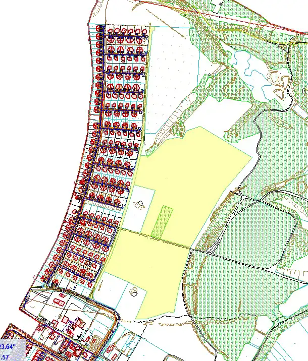 Kształt działek 3446 i 3444 jest nieregularny – umożliwiający optymalną zabudowę, działka 3442 to długi i wąski pas.