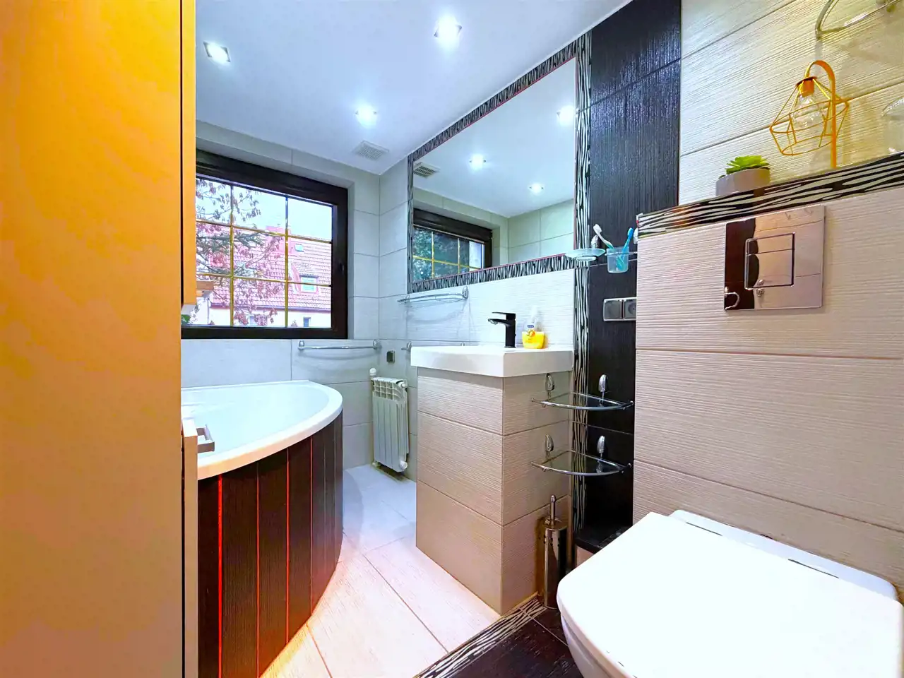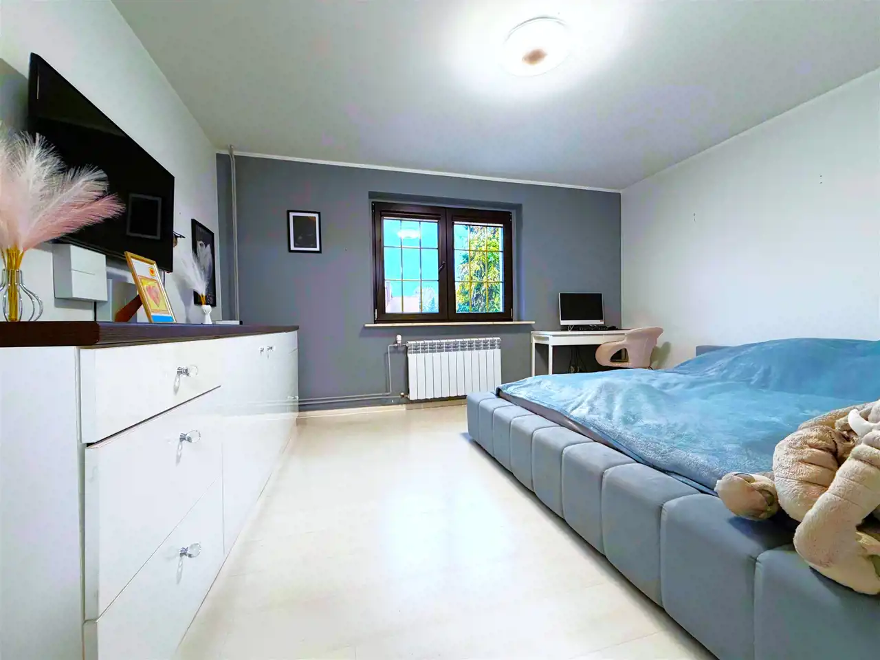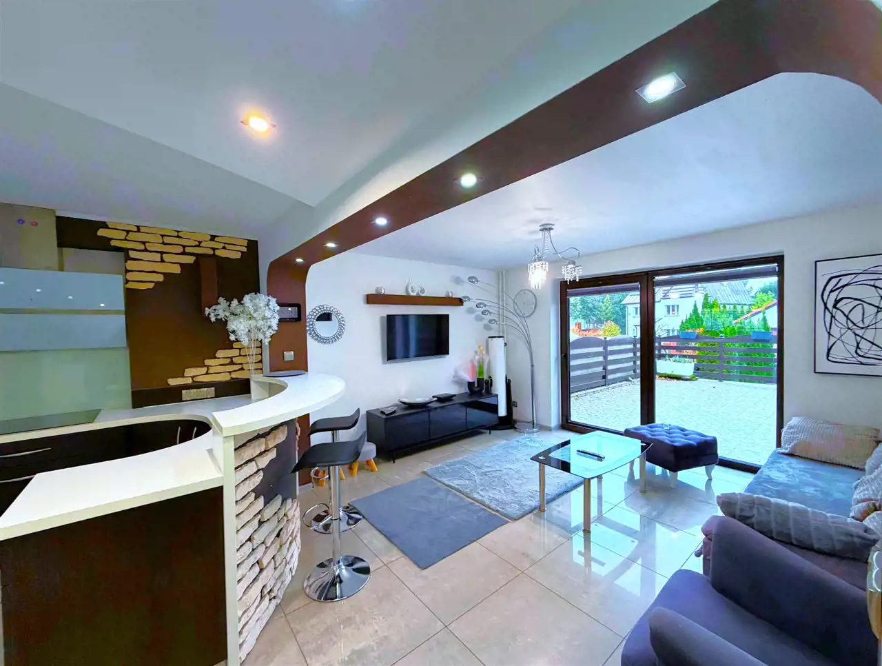 Z salonu wychodzimy na duży taras, gdzie w letnie wieczory będziesz mógł odpoczywać po dniu pracy, jest to idealne miejsce do relaksu, grillowania, oraz zabawy z dziećmi. Na piętrze zaś znajduję się dodatkowy balkon z widokiem na ogród, oraz niską zabudowę. Teren całej posesji jest całkowicie ogrodzony, zapewniając prywatność. Do dyspozycji nowego właściciela jest duży garaż (ok. 25m2) w bryle budynku oraz dodatkowe miejsca postojowe na terenie nieruchomości.