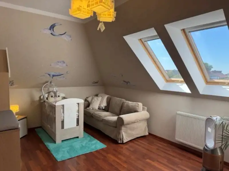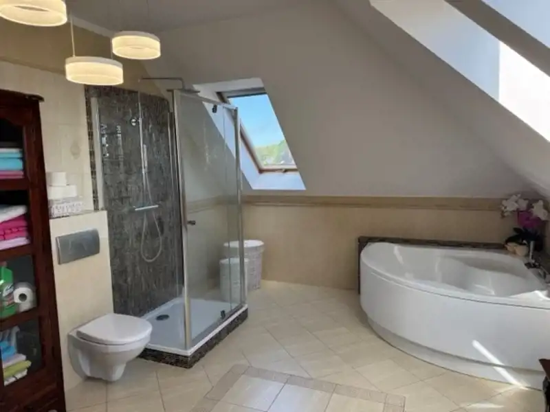 Poddasze: hall, 4 sypialnie (w tym główna z balkonem), łazienka.