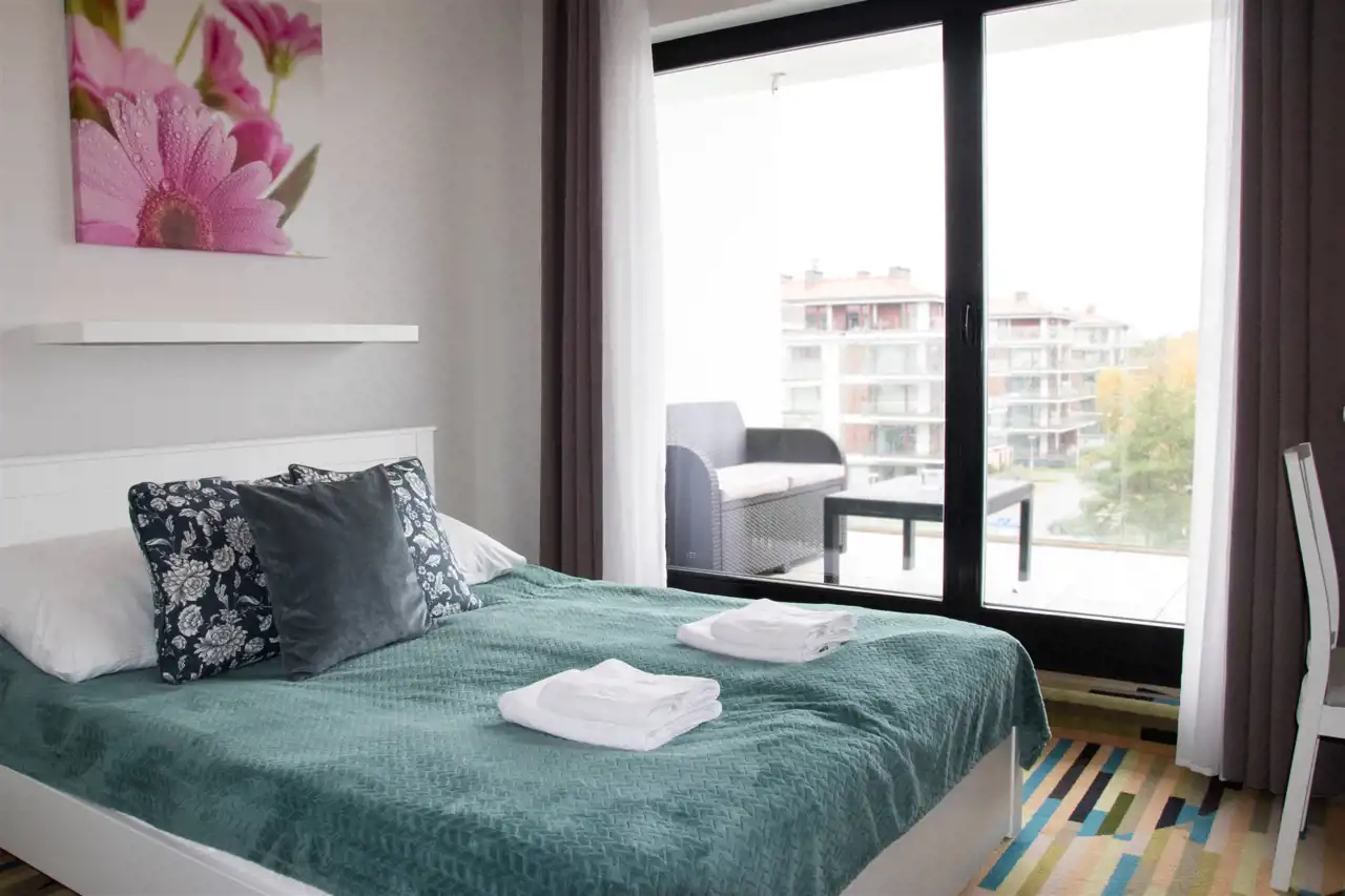 Mamy Państwu do zaoferowania apartament jednopokojowy z pięknym widokiem na morze w prestiżowej okolicy w Baltic Park Molo, Świnoujście. Apartament ma 28m2, dodatkowo posiada 15 m2 tarasu.