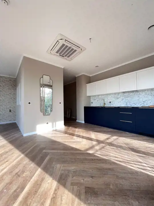 Nieruchomość znajduje się w 4 piętrowym budynku z cichobieżną windą. Pod budynkiem znajduje się dwupoziomowa hala garażowa. Lokal ma powierzchnię 42,3 m2 i składa się z pokoju dziennego z aneksem kuchennym, części sypialnianej, korytarza oraz łazienki. Apartament jest wykończony z wysokiej klasy materiałów i jest gotowy do użytku.