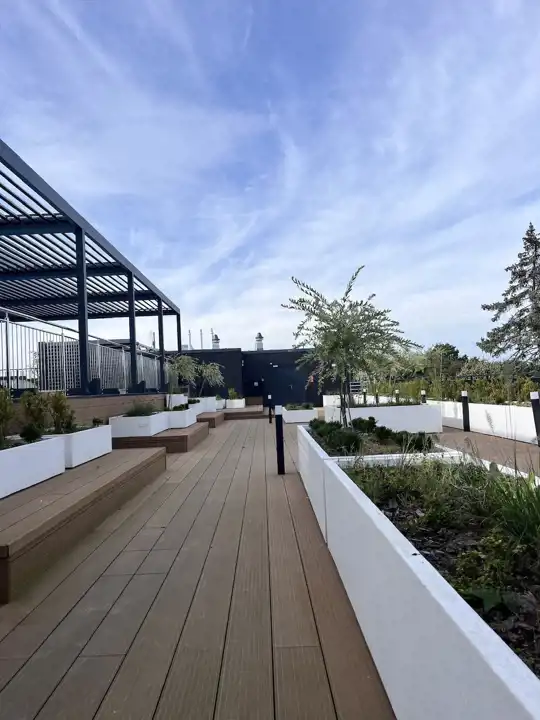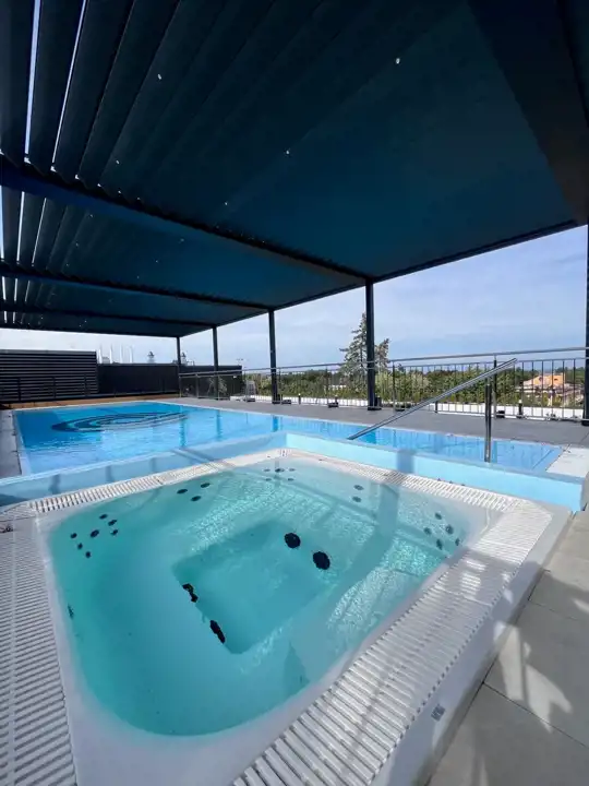 Na dachu budynku przygotowano do wyłącznej dyspozycji właścicieli lokali przestrzeń wellness z basenem (11x4), dwiema saunami, jaccuzzi oraz barem, skąd rozpościera się piękny widok na morze.