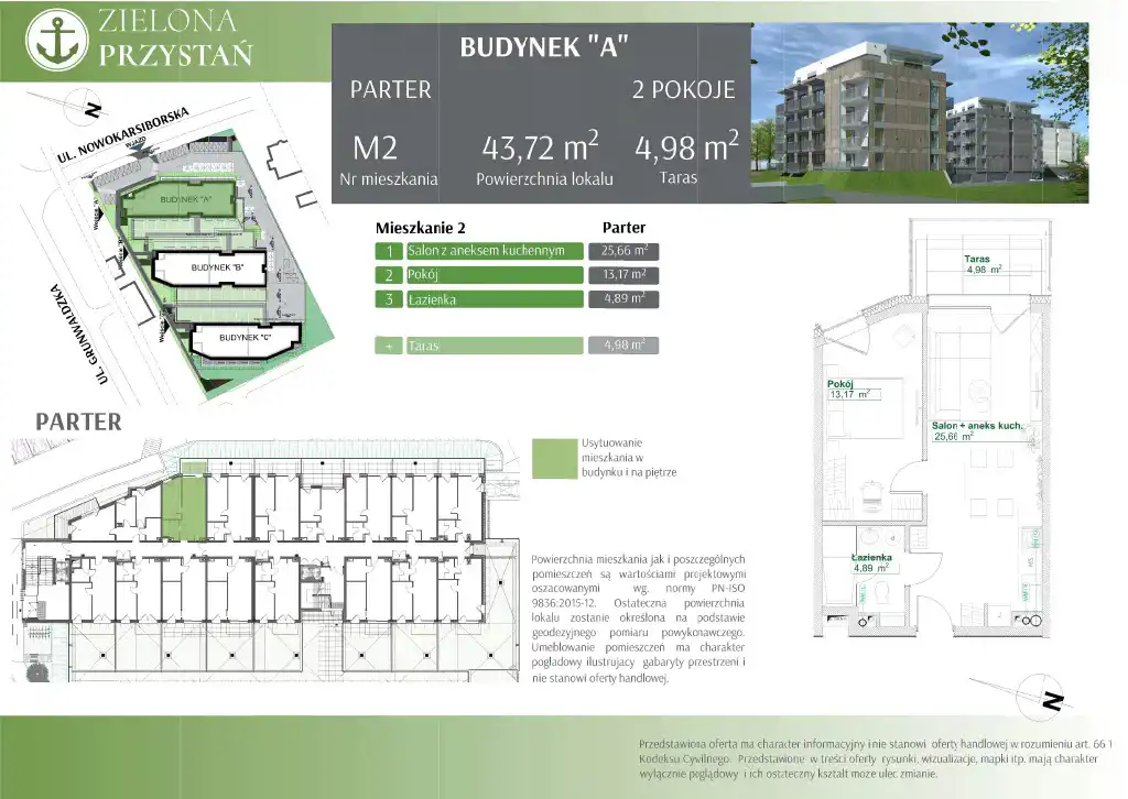 Opis inwestycji: Zespół trzech budynków mieszkalnych wielorodzinnych A, B, C z podziemnymi garażami wielostanowiskowymi wraz zagospodarowanym podwórzem. Budynek A zlokalizowany jest bezpośrednio przy ul. Nowokarsiborskiej, budynek B zlokalizowany jest na środku, budynek C zlokalizowany jest w głębi działki. Między budynkami powstały przestrzenie , stropodachy nad garażem, które zagospodarowane zostały jako tarasy przynależne do mieszkań, dojścia do klatek schodowych zlokalizowanych w środkach budynków, a także jako rekreacyjne części wspólne. Wszystkie budynki posiadają 5 kondygnacji nadziemnych oraz jedną kondygnację podziemną. Za budynkiem C będzie zlokalizowany plac zabaw dla dzieci. Przy każdym z wejść do głównych klatek schodowych zlokalizowano miejsca na stojaki na rowery, betonowe siedziska zintegrowane z donicami na zieleń, trabaty żwirowe z wysoką roślinnością oraz śmietniki terenowe. Planowane zakończenie całego projektu, inwestycji do 31.05.2027r. Teren, na którym posadowione są budynki mieszkalne w użytkowaniu wieczystym, w momencie zakupu Umową deweloperską,przed podpisaniem Umowy przeniesienia własności zostanie przekształcone na własność z koniecznością uiszczenia opłaty przekształceniowej przez Nabywcę.