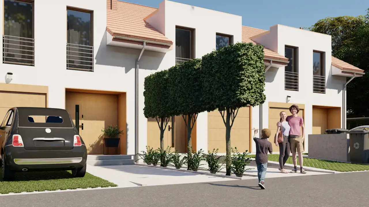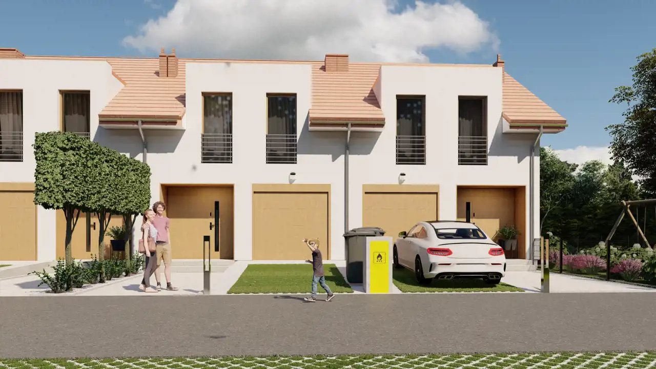 Domy w zabudowie szeregowej z własnym garażem i ogródkiem