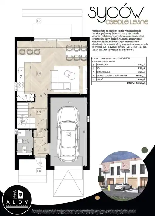 - Garaż – 17,62 m²