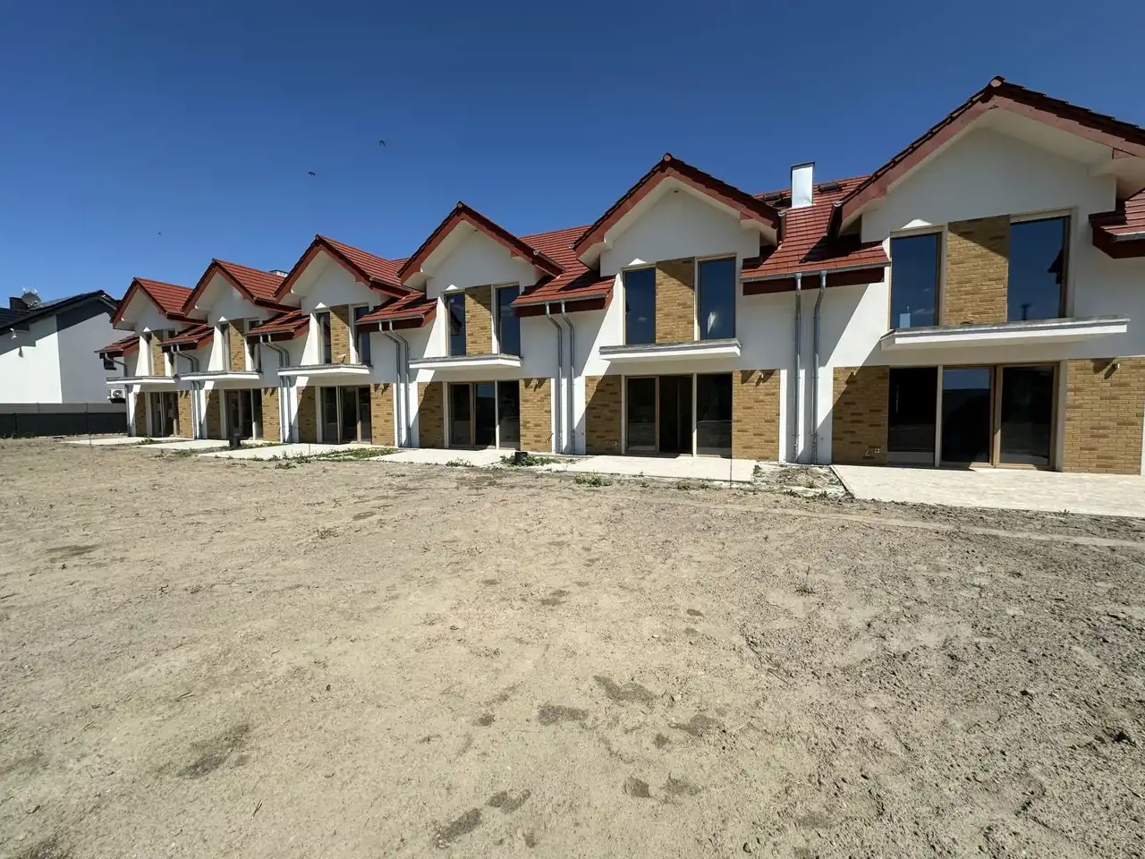 Na sprzedaż nowoczesne domy jednorodzinne w zabudowie szeregowej o powierzchni 110 m², zlokalizowane na kameralnym Osiedlu Leśnym w Sycowie. Inwestycja obejmuje 6 dwupoziomowych budynków, każdy z własnym ogrodem oraz garażem.