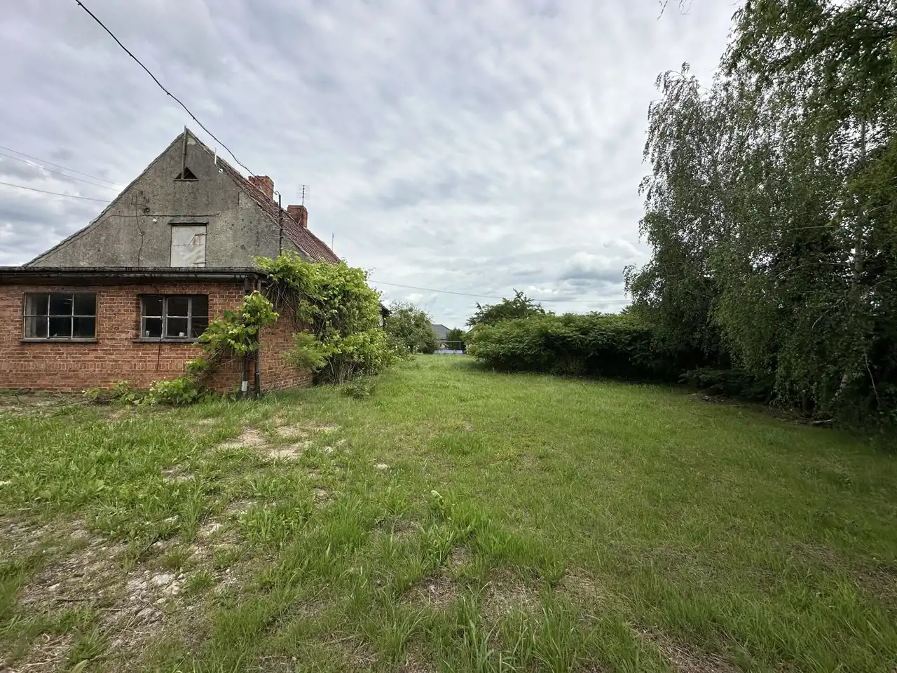 1) Budynek mieszkalny o pow. ok. 120 m2to parterowa, częściowo podpiwniczona nieruchomość z poddaszem użytkowym- z dachem dwuspadowym. Budynek posiada takie pomieszczenia jak: Kuchnia, łazienka z prysznicem, 4 pokoje, komunikacja, pomieszczenia gospodarcze na poddaszu oraz piwnica z piecem centralnego ogrzewania. Nieruchomość posiada takie media jak prąd i woda, nadaje się do generalnego remontu. Do budynku mieszkalnego dobudowany został garaż.