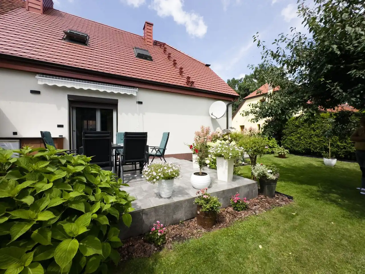 Za budynkiem znajduje się pięknie urządzony ogród z tarasem i murowanym grillem. Liczne krzewy ozdobne, drzewa owocowe i estetyczne zagospodarowanie terenu sprawiają, że jest to idealne miejsce do wypoczynku w ciszy i spokoju. Dojazd do posesji oraz zabudowy gospodarczej jest w całości wykostkowany.