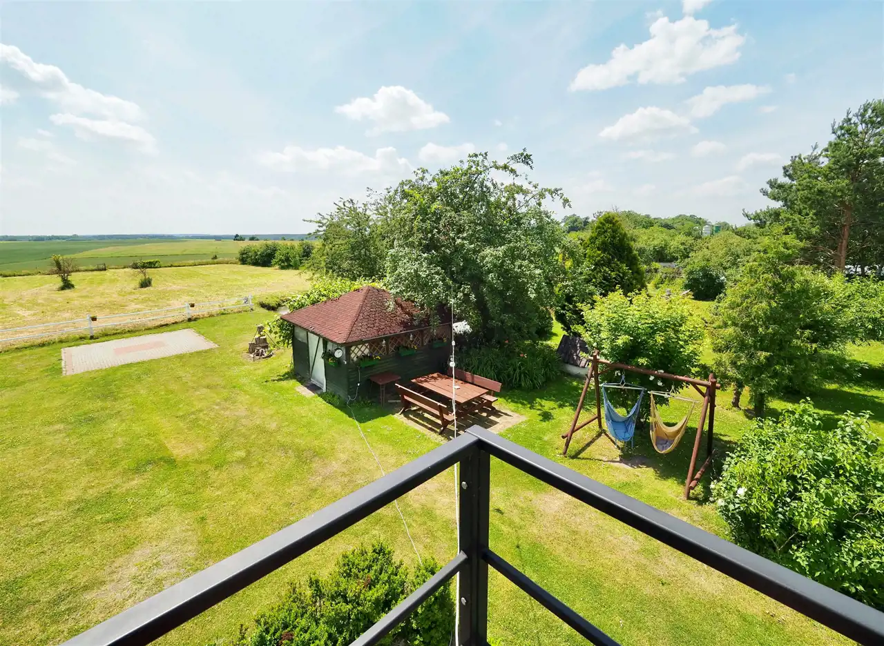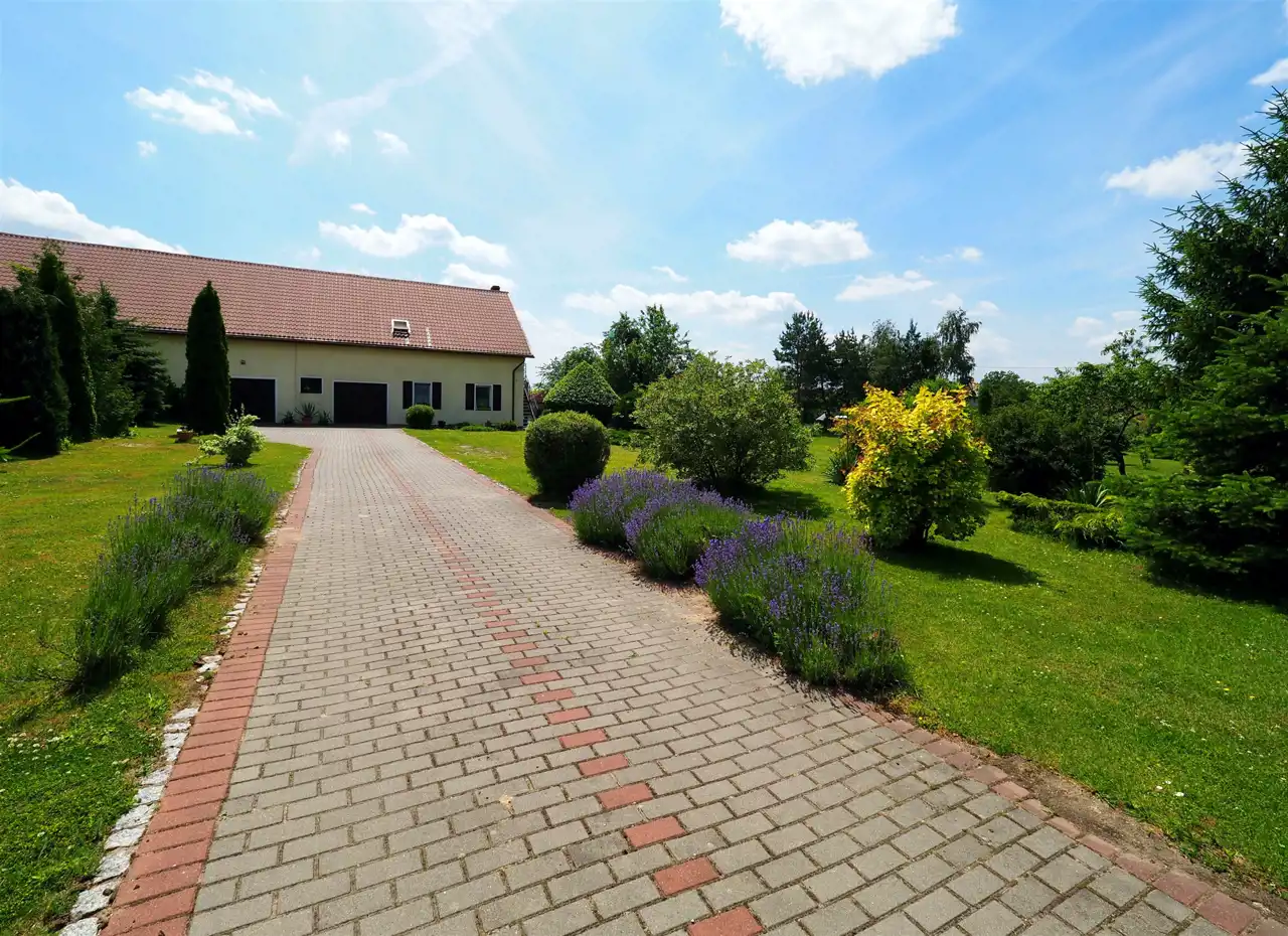 - Teren o pow. 7000 m2 ogrodzony - pięknie zagospodarowany ogród z licznymi nasadzeniami, wyodrębniona działka pod zabudowę nowego domu, wybieg dla koni!